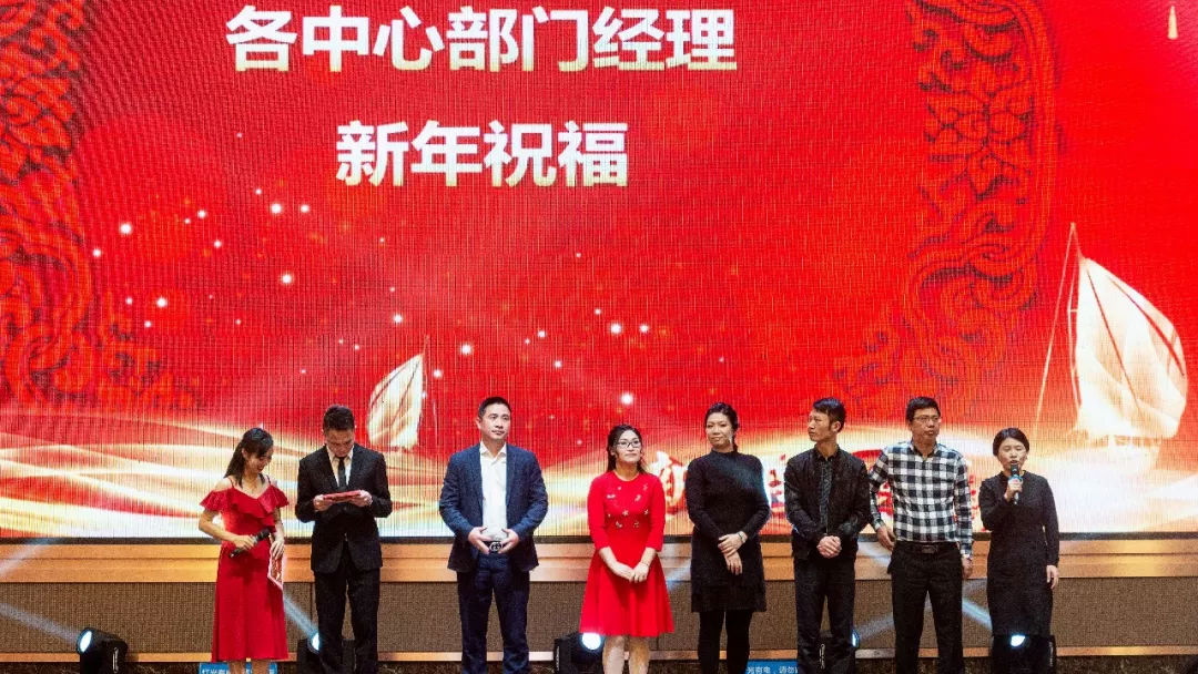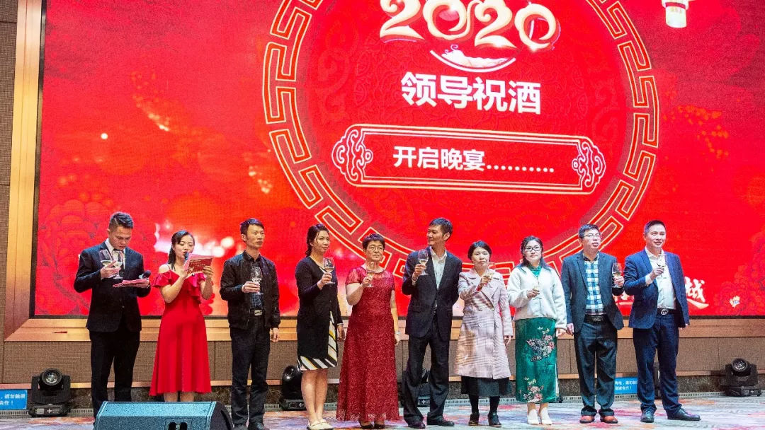 新年晚宴上,陈总、钟董带领各中心领导举杯向全体员工敬酒,共同祝愿中成的明天会更好。