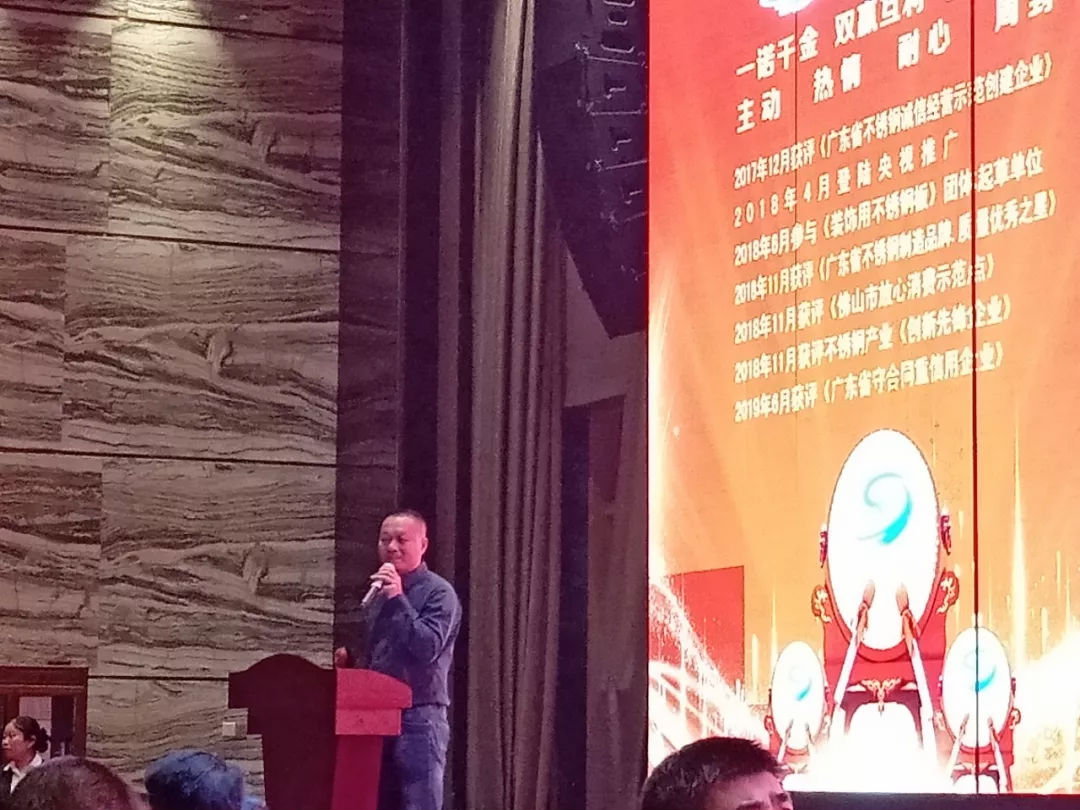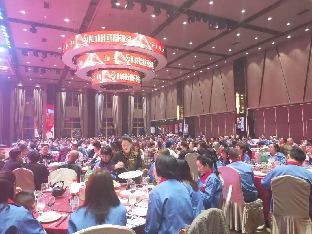 华灯初上,流光溢彩。1月9日晚,广东省不锈钢材料与制品协会理事单位佛山市鑫金利恒不锈钢有限公司2020年迎春晚会在佛山市顺德区陈村维也纳酒店隆重举行。鑫金利恒总经理童朝万与其全体员工、部分业界同仁等 200多人出席,我会执行会长林泽榆,副会长兼装饰板分会执行会长、鑫航集团董事长王占友,执行秘书长黄耿燕,理事、鑫盛佳董事长林盛发等应邀到会祝贺。