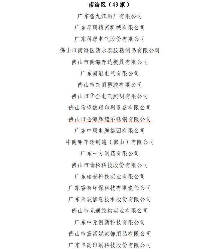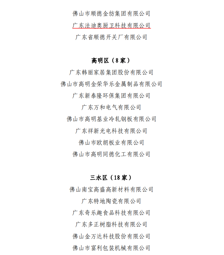 名单显示,广东省不锈钢材料与制品协会副会长兼配套分会会长单位广东世创金属科技股份有限公司、理事单位佛山市金海辉煌不锈钢有限公司、定制分会执行会长单位广东法迪奥厨卫科技有限公司入围该名单。