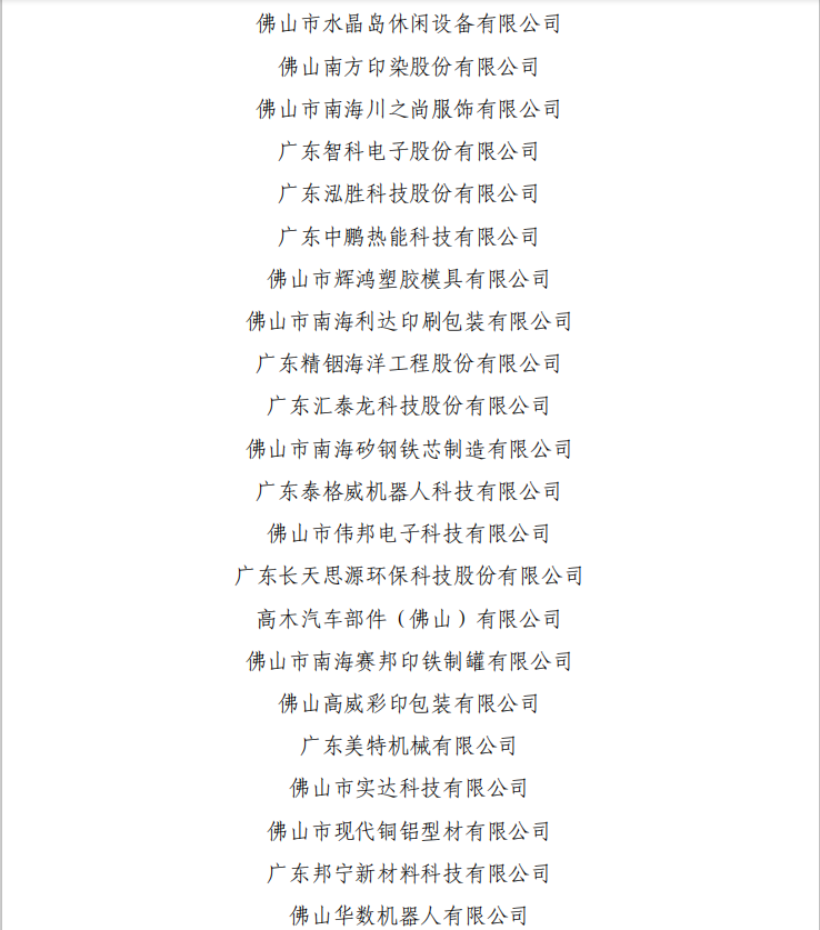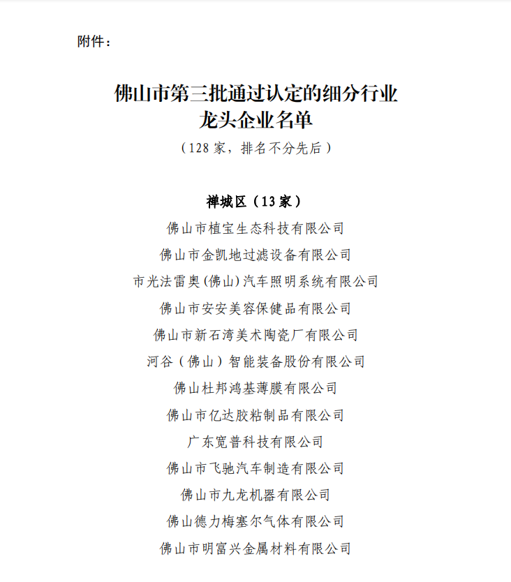 世创、金海辉煌、法迪奥获认定为佛山市细分行业龙头企业