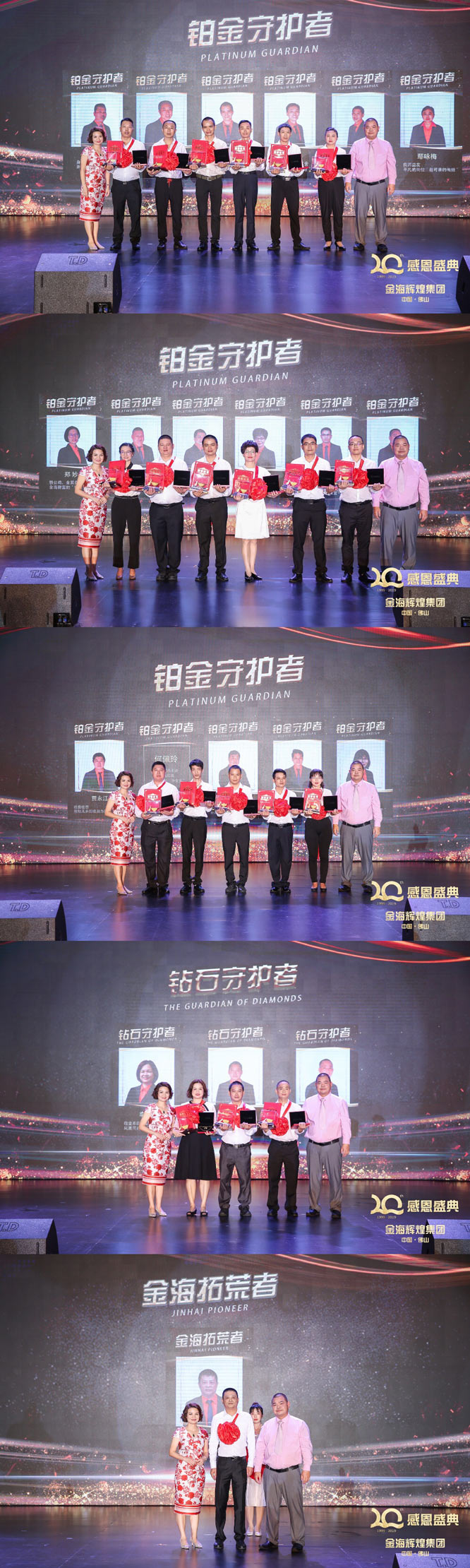 会上,王文辉总经理、李娟董事长为20年来一直追随其企业、一路不离不弃、荣辱与共的“命运共同体”的“铂金守护者”、“黄金守护者”、“钻石守护者”、“金海拓荒者”、“金牌战略合作伙伴”等获得者颁奖。