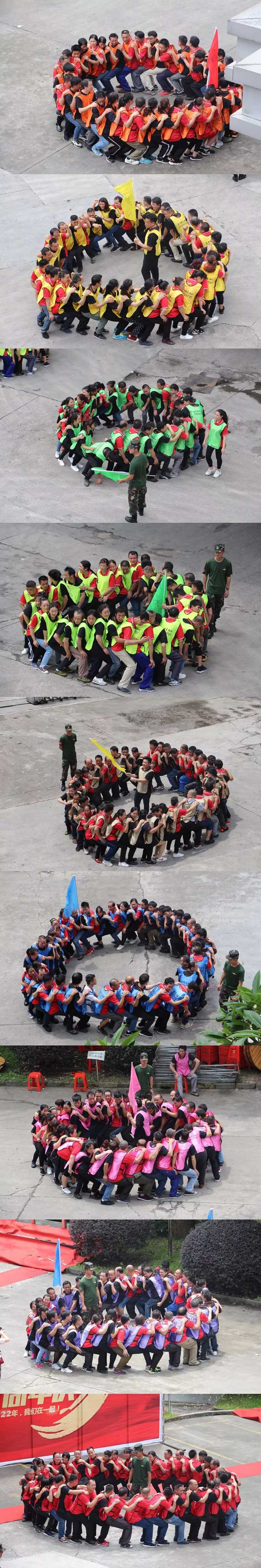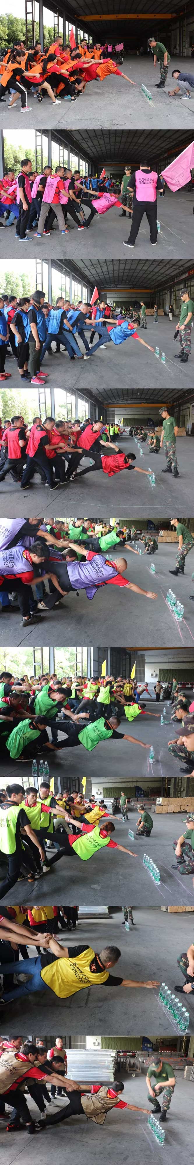 第一环节,由九个团队分别做士气展示,通过展示PK,考察每个团队的目标感、合作沟通能力、凝聚力及应变力,总教练对每一个队团存在的问题进行分析比对,犀利地提出要求和改进措施,让团队进行内部整改提升之后再次PK。需要不断的摆正心态,善于反省,发现问题,成员间及时有效沟通、协同行动最终突破极限,超越自我。以此来煅造出优秀、团结、进取、勇敢、坚强的团队。