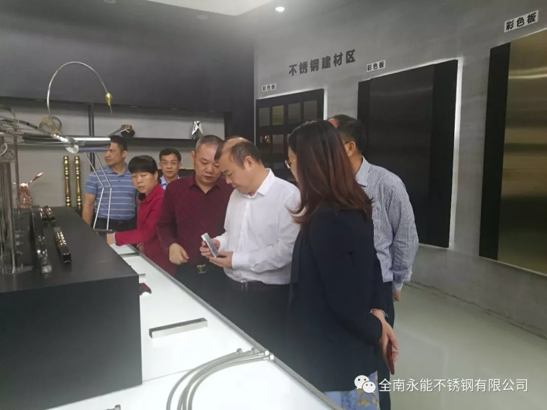 公司彭永红董事长陪同蓝主席观看了公司的宣传片,也参观了公司的不锈钢展厅,详细了解了不锈钢作为新型特种材料的广泛应用。