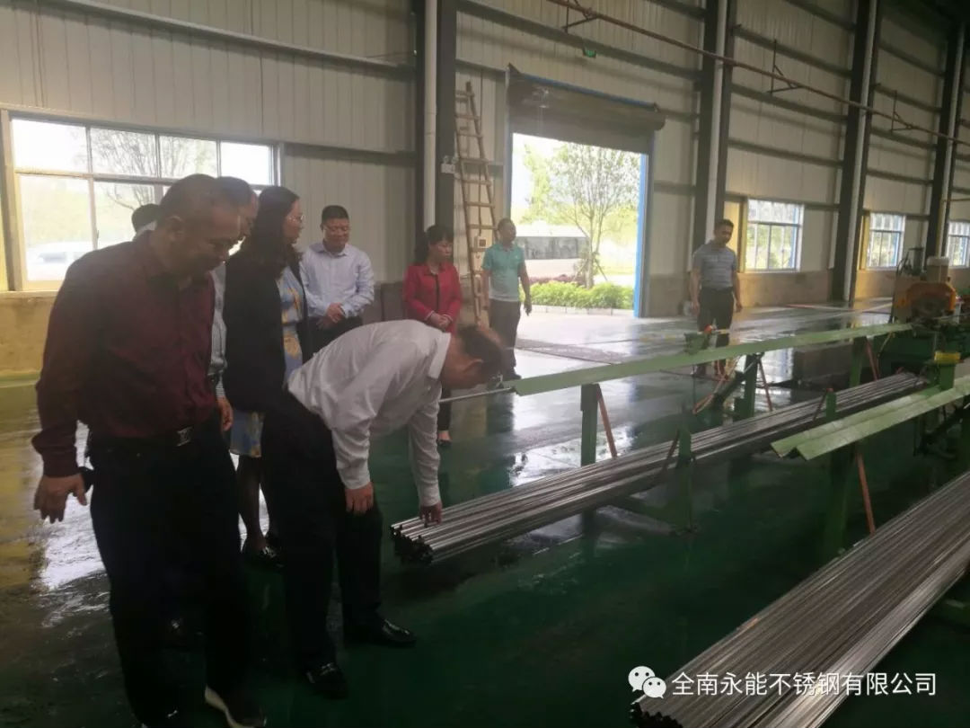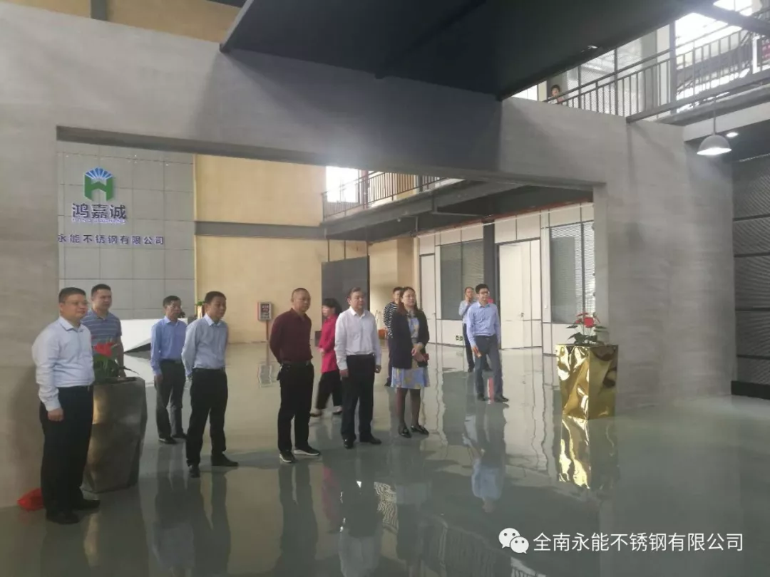 4月24日,江西省赣州市政协副主席蓝赟到全南永能不锈钢有限公司调研。全南县人民政府副县长刘婷婷等县领导陪同调研。