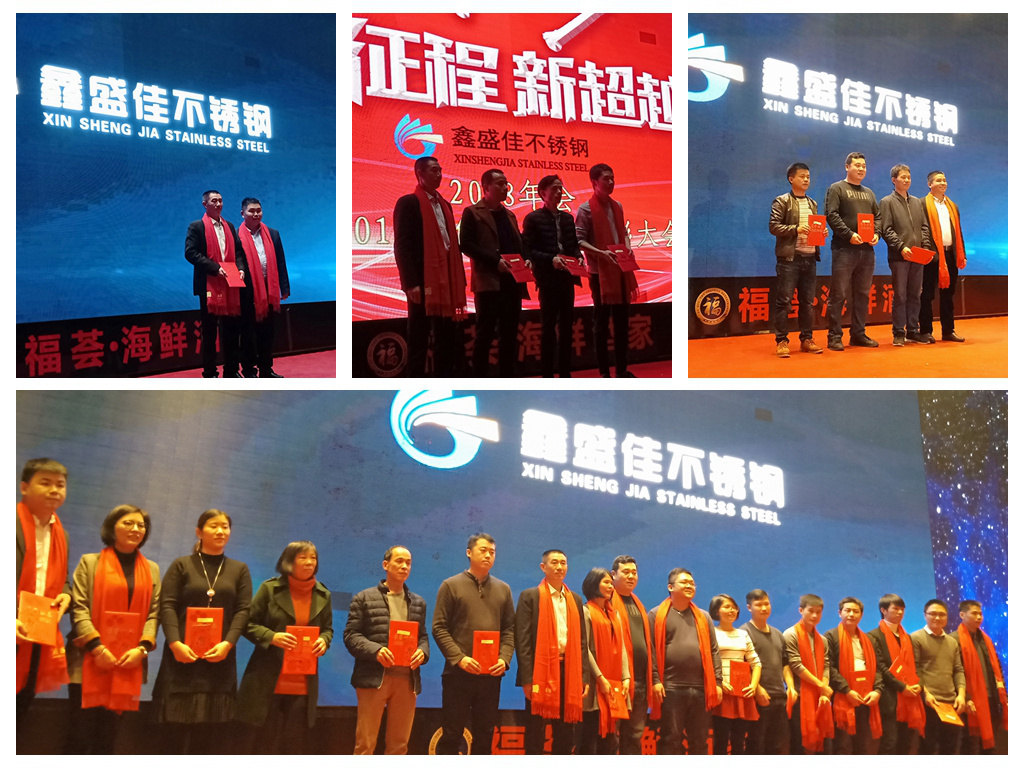 随后,总经理林盛立首先作2018年的工作总结和新年规划。据介绍,2018年,鑫盛佳板材总销售量500多万张,共计7万多吨,其中出口3万多吨,包括了非洲西北部的摩洛哥在内的10多个国家。他表示,2019年,鑫盛佳全体人员要提高质量意识,提升服务意识,加强工作之余的各岗位专业知识、技能的学习。打造好鑫盛佳这块招牌,把鑫盛佳的品质形象提升一个新的高度,打造成不锈钢行业的金字招牌,力争实现年销量超8万吨的目标,质量做到零投诉的目标。