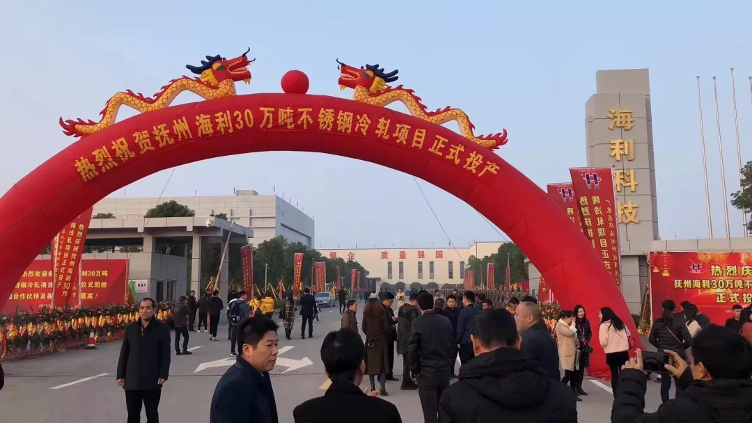 11月23日上午,江西抚州海利金属科技有限公司人声鼎沸、喜庆热闹,其30万吨冷轧项目正式投产揭牌仪式隆重举行。江西省政协副主席、抚州市委书记肖毅,抚州市委副书记、市长张鸿星,抚州市委常委、常务副市长、市委秘书长谭小平,抚州市政府副市长肖承贵,抚州市政府秘书长吴猛强,抚州高新区党工委书记邱建国,抚州高新区党工委副书记、管委会主任曾月兴等省市区领导;海利集团董事长李儒昌;广东省不锈钢材料与制品协会(下称我会)执行秘书长黄耿燕受执行会长林泽榆委托应邀前往祝贺;我会常务副会长简杰坤、副会长卢汉明应邀与来自全国各地的海利经销商、供应商、合作伙伴代表约1100人共同出席,见证祝贺。