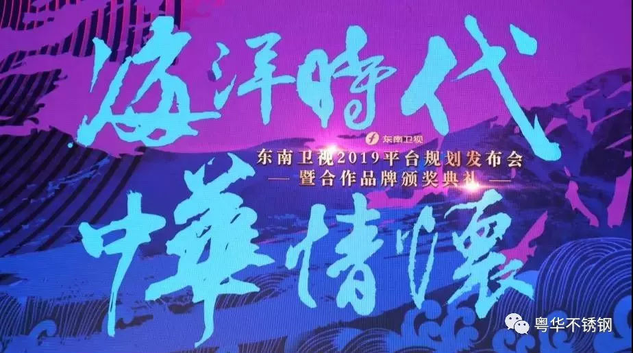 2018年9月11日,“东南卫视2019平台规划发布会暨合作品牌颁奖典礼”在厦门隆重举行,作为中国不锈钢行业的知名品牌,广东粤华不锈钢荣获“东南卫视2017~2018年度行业典范合作伙伴”称号。