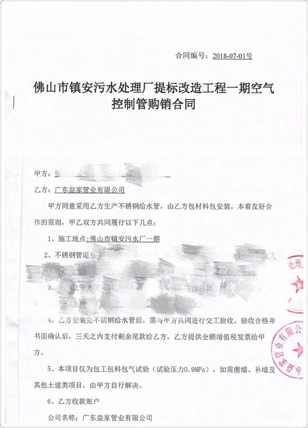 近期,佛山市镇安污水处理厂一期工程也已竣工验收,这个益民项目选用的管道正是不锈钢水管,此次使用的管道由广东省不锈钢材料与制品协会理事单位广东益家管业生产。