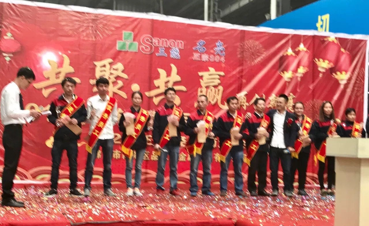 随后,在曾少亮董事长的邀请下,林泽榆为三能不锈钢年度最佳销售金奖获得者进行颁奖。