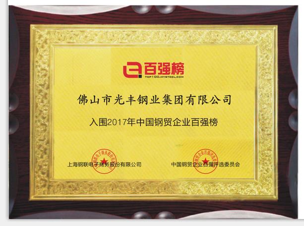 光丰钢业集团荣获2017年度中国钢贸企业百强奖