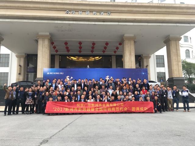 广东省不锈钢材料与制品协会副会长单位——广东新鸿秀金属有限公司“新鸿秀 · 2017新跨越暨全国经销商新春签约会”在肇庆悦凯国际酒店隆重举行。此次全国经销商新春签约会,标志着鸿秀品牌升级之路开启了新旅程,为新鸿秀在全国性战略布局持续、健康、快速发展奠定了良好的基础。