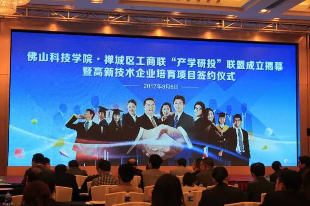 会议上,佛山科学技术学院和禅城区工商联签署了合作协议共同成立“产学研投”联盟。