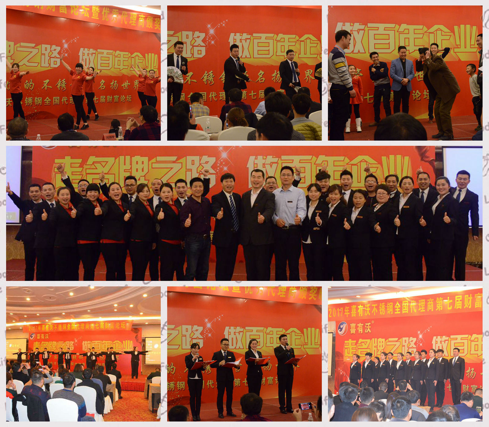 2月27日,农历鸡年二月二,在这样一个初春伊始,万物复苏的好日子里,广东省不锈钢材料与制品协会(下称我会)成员单位--佛山喜有沃不锈钢全国代理商第七届财富论坛在名满天下的西湖河畔边的浙江开元萧山宾馆正式落下帷幕。喜有沃不锈钢董事长单国喜、总经理姚振峰、总顾问郑国令与来自河南、山东、安徽、广东、浙江、海南等地的全国代理商近400人参加,我会专职执行副会长兼秘书长林泽榆以及理事高建华、姚敬源应邀出席。