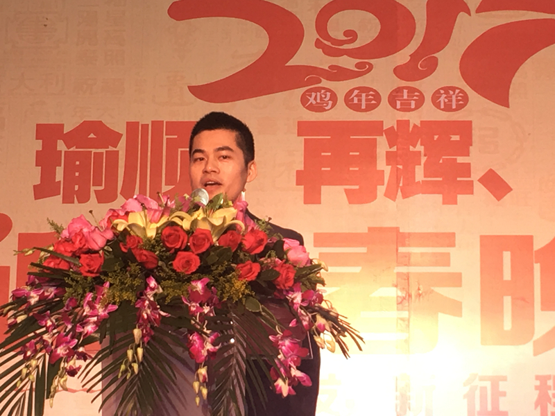 晚会伊始,我会理事、瑜顺不锈钢总经理彭文浩代表孙峰董事长发表新春致辞。他首先对孙董和全体同仁的付出致以诚挚感谢,对协会领导和业内同仁的到来表示热烈欢迎。致辞中,他介绍了再辉、瑜顺等三家兄弟公司2016年给力的销售业绩,总结回顾了过去一年在产品质量提升、辅料成本下降、品牌发展建设、管理水平提升以及员工团队培训等五个方面所取得的不俗成绩。彭总表示,新的一年,公司将继续全方位进行优化升级,将有条不紊推出一系列举措,进一步提高品牌形象与产品质量。与此同时,继续营造家的氛围,与全体员工一起共同创造更美好的未来。