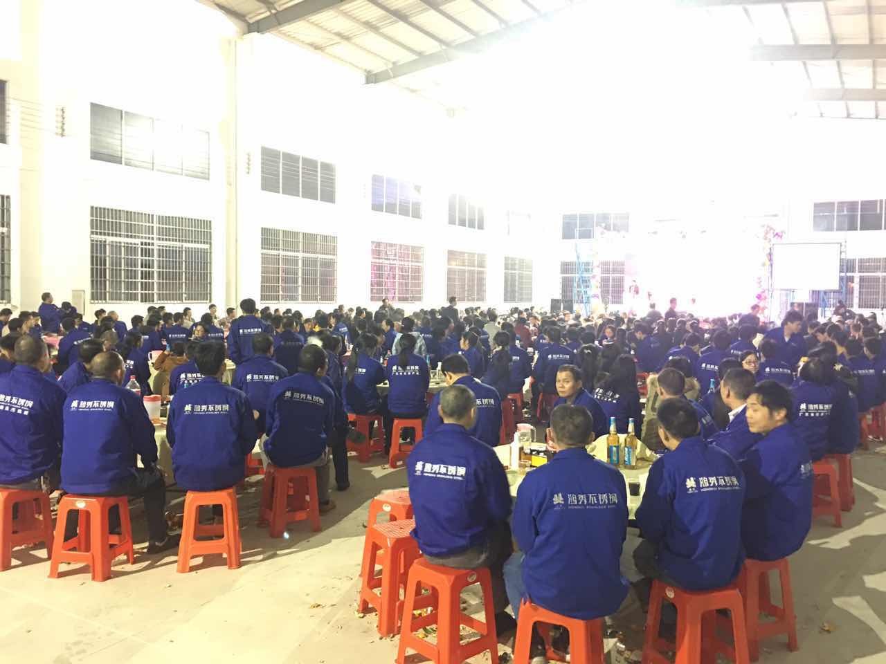 【广东省不锈钢材料与制品协会】讯 1月18日晚,天清气朗齐相聚,爆竹连连庆丰年。我会副会长单位--广东新鸿秀金属有限公司以“激扬15载,实现新跨越”为主题的迎新晚会在肇庆高新区鸿秀二期新厂内隆重举行。新鸿秀董事长邓运如、董事长助理兼生产中心总经理盛广海、营销中心总经理郑学崇与该公司员工近400人出席,我会专职执行副会长兼秘书长林泽榆携广东不锈钢网有关人员应邀出席并致辞。