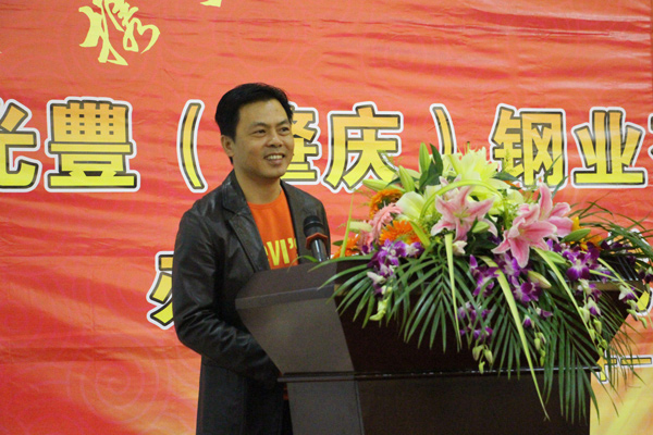 吴伟斌董事长首先致辞,他深怀感恩之心,对广大员工多年来为光丰的持续发展所付出的努力致以深深的感谢。他表示,肇庆公司新办公大楼落成并投入使用,是光丰钢业不断完善办公环境和条件的一座里程碑。面对未来的挑战,光丰人有信心有能力成为不锈钢行业的佼佼者,努力实现“求强做大”的企业愿景,让员工家人们作为光丰人而骄傲、自豪!