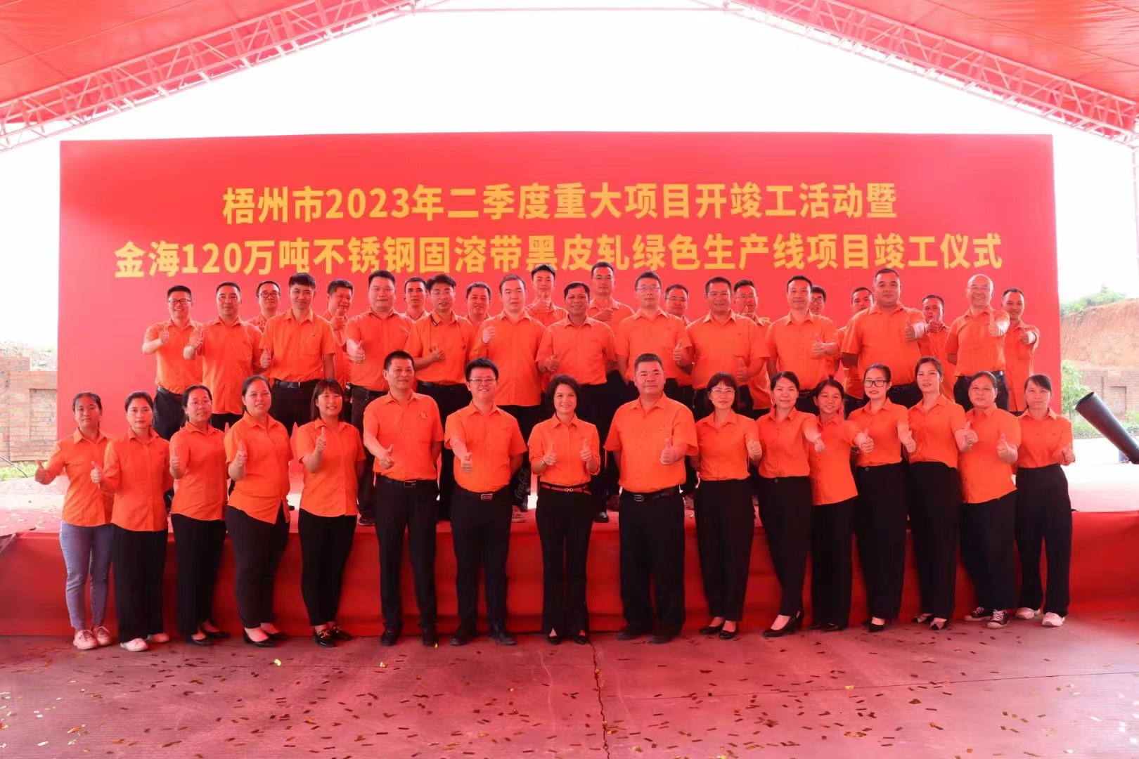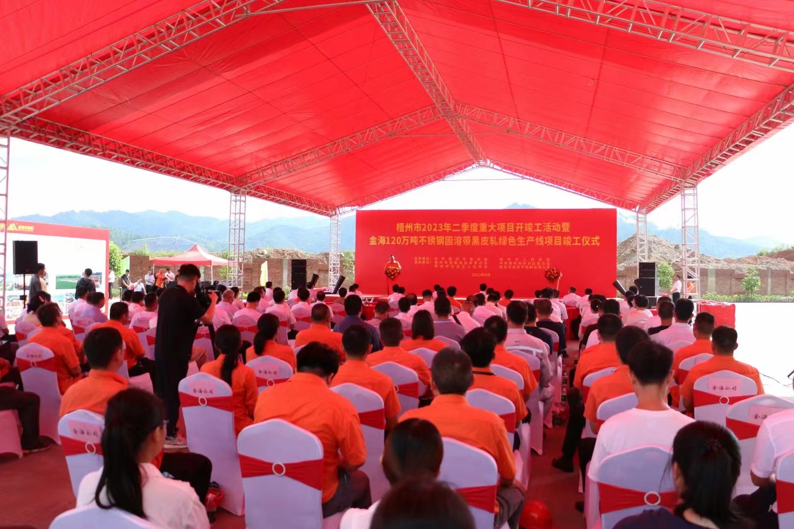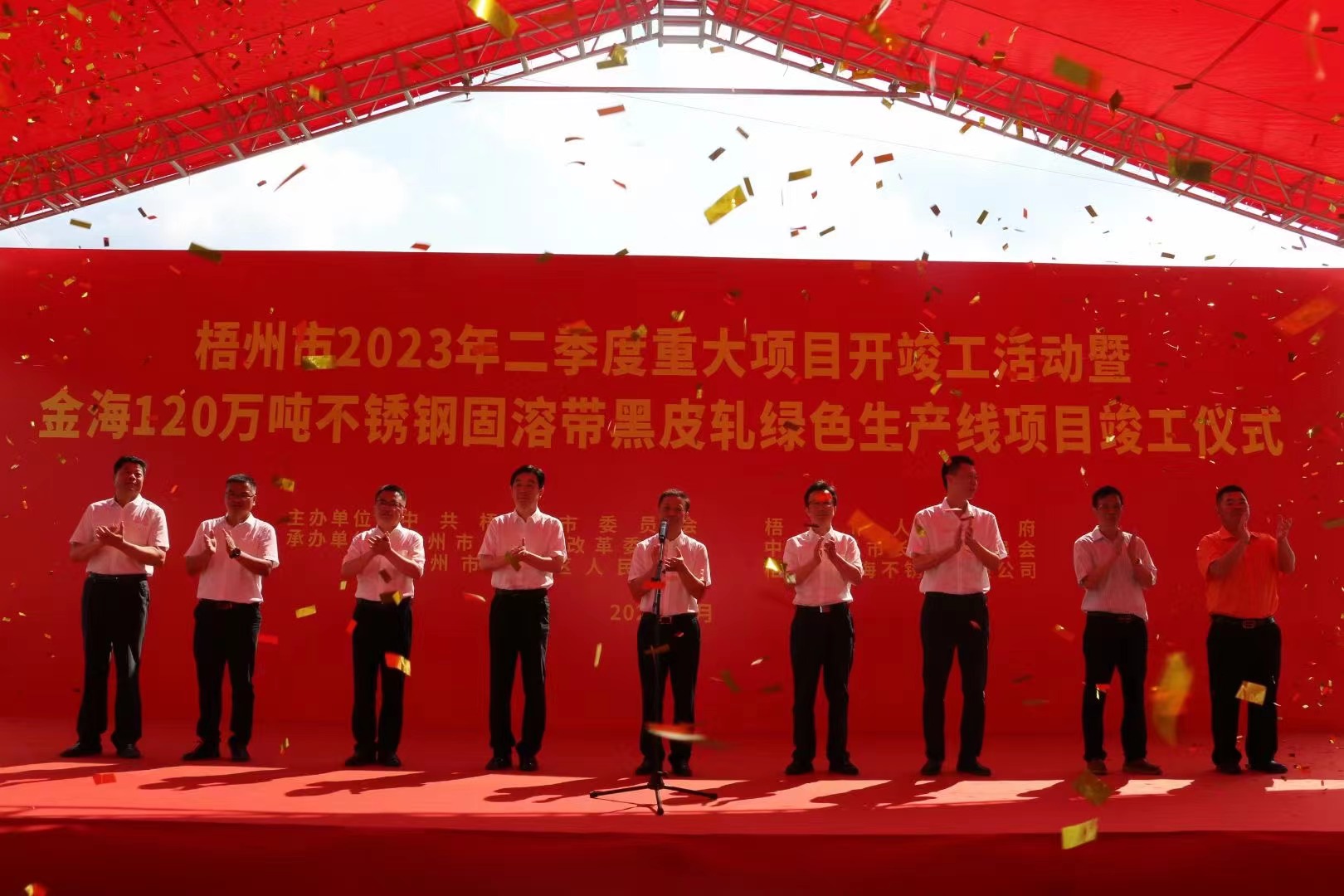 6月28日上午,广西梧州市举行2023年二季度重大项目开竣工活动,主会场设在梧州长洲区不锈钢园区金海120万吨不锈钢固溶带黑皮轧绿色生产线项目建设现场。梧州市委书记蒋连生出席活动并宣布项目竣工。