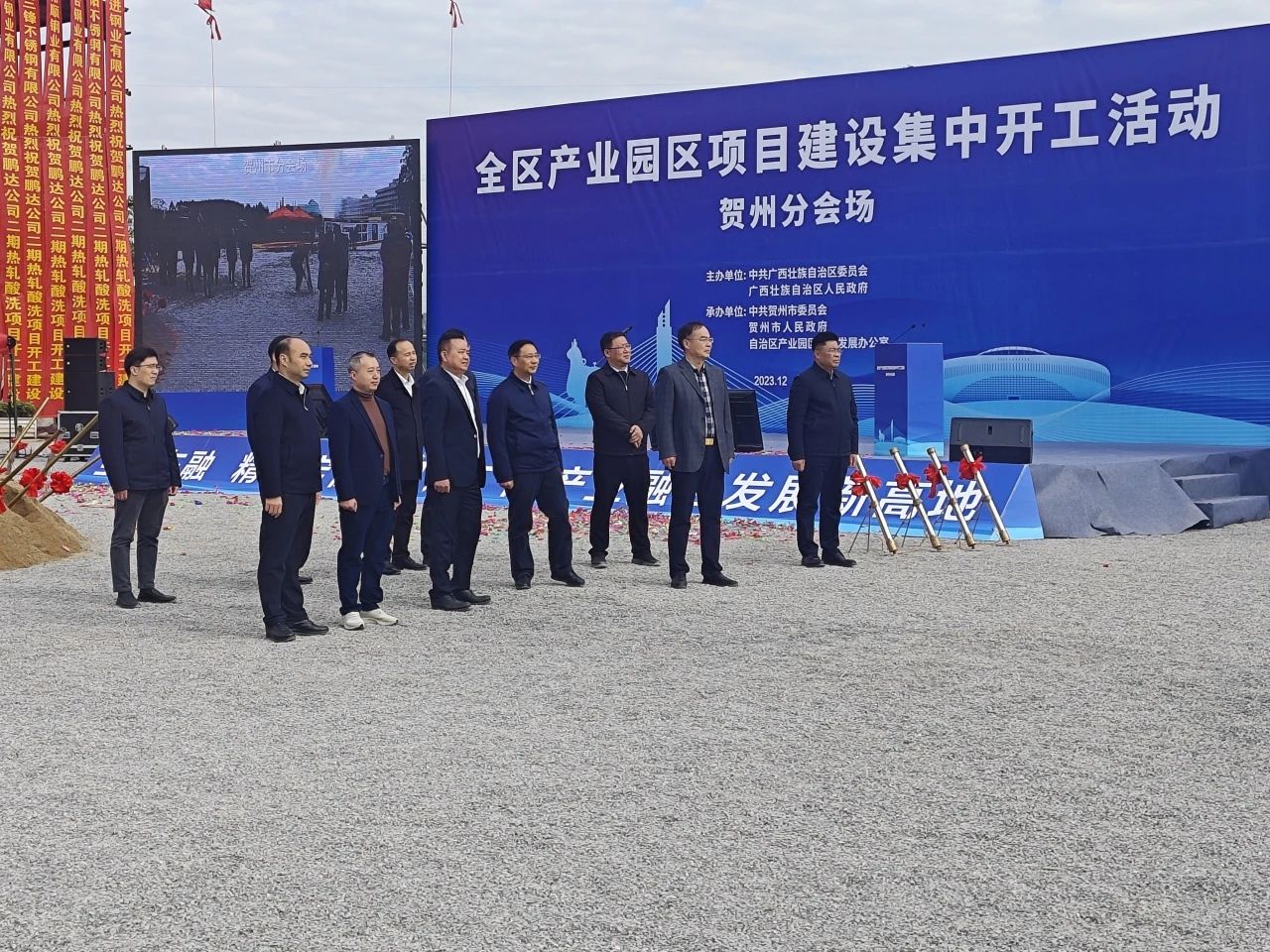 2023年12月26日上午,广西贺州鹏达新材料有限公司不锈钢卷板生产性配套设施综合技术改造项目开工仪式在贺州市信都工业区隆重举行。贺州市委书记李杰云,贺州市委常委、副市长刘洪军等领导出席活动,贺州市委常委、政法委书记赖春忠主持开工仪式。广东省不锈钢材料与制品协会会长、党支部书记林泽榆应邀出席并致辞,会长助理陈嘉泳一同参加;来自佛山、揭阳的广东不锈钢产业链企业近200人应邀出席共同见证。