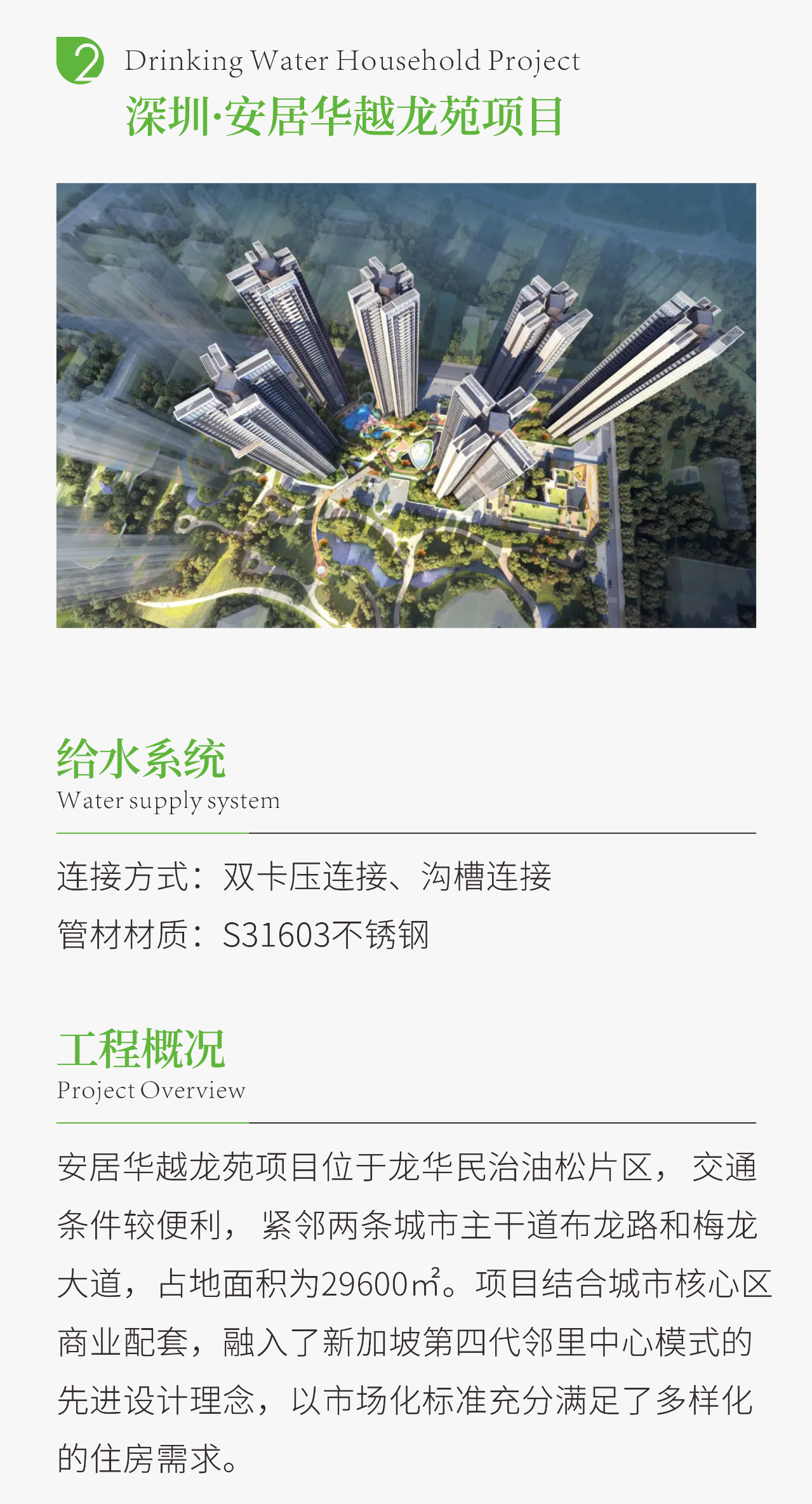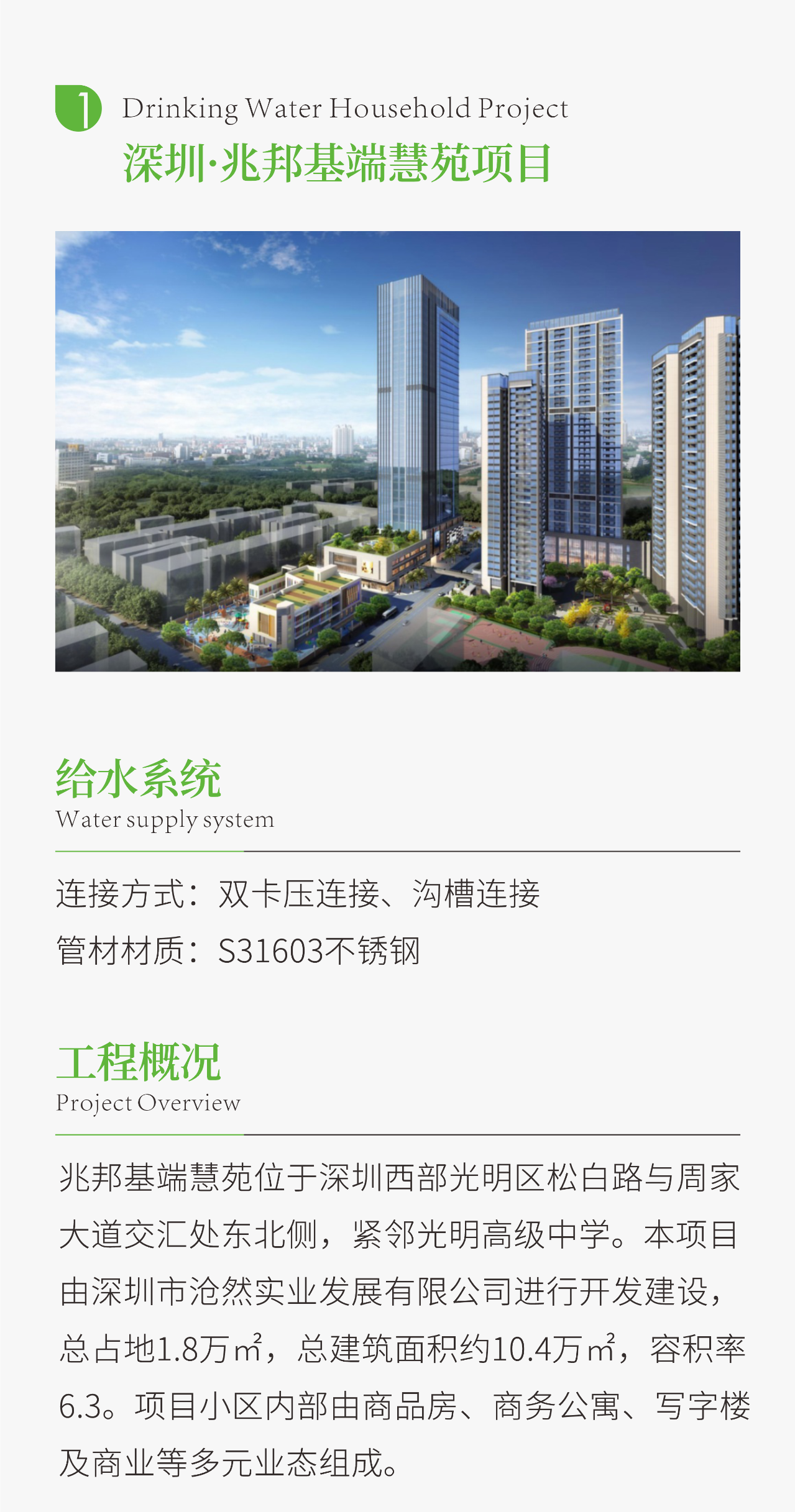 今日分享广东省不锈钢材料与制品协会常务副会长单位深圳民乐管业广东深圳兆邦基端慧苑项目和安居华越龙苑项目工程案例。