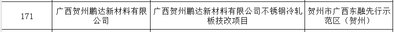 日前,广西壮族自治区工业和信息化厅公布2025年一季度“开门红”政策支持重点工业项目加快投资拟补助名单。据悉,广东省不锈钢材料与制品协会副会长单位广东金海辉煌集团旗下核心企业广西梧州市金海不锈钢有限公司、广西弘毅新材料有限公司,理事单位佛山市南海鹏定达金属制品有限公司兄弟企业广西贺州鹏达新材料有限公司均在列: