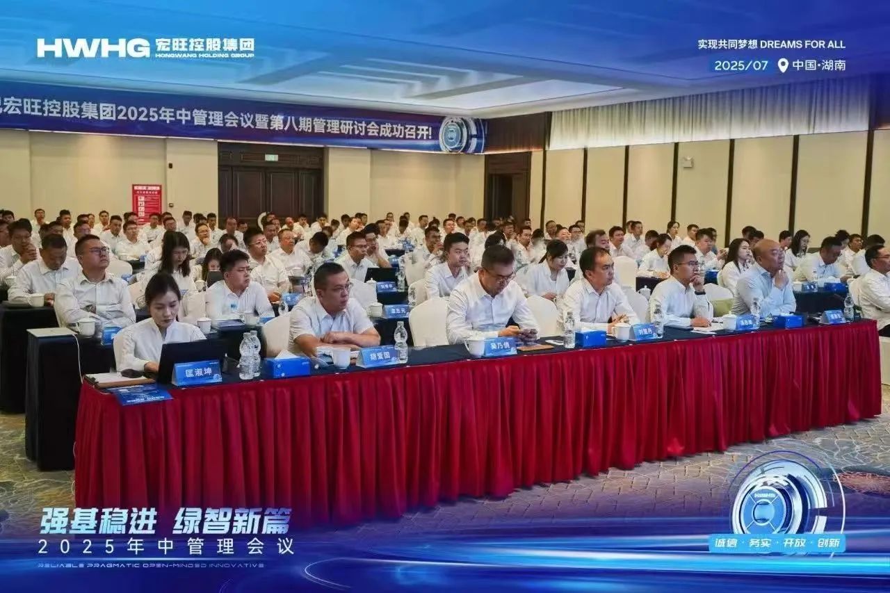 7月10日-14日,宏旺控股集团2025年中管理会议、管理研讨会、“宏牛奖”劳动模范颁奖典礼、名企参访和主题培训在湖南娄底举行。宏旺控股集团董事长、总裁戴促辉与其一众高管、集团总部各职能部门及肇庆宏旺、福建宏旺、山东宏旺、阳江宏旺、湖南宏旺、广西宏旺、宏旺海外、四川宏旺、河南宏旺、佛山宏旺、无锡宏旺等单位主要负责人参加了会议。