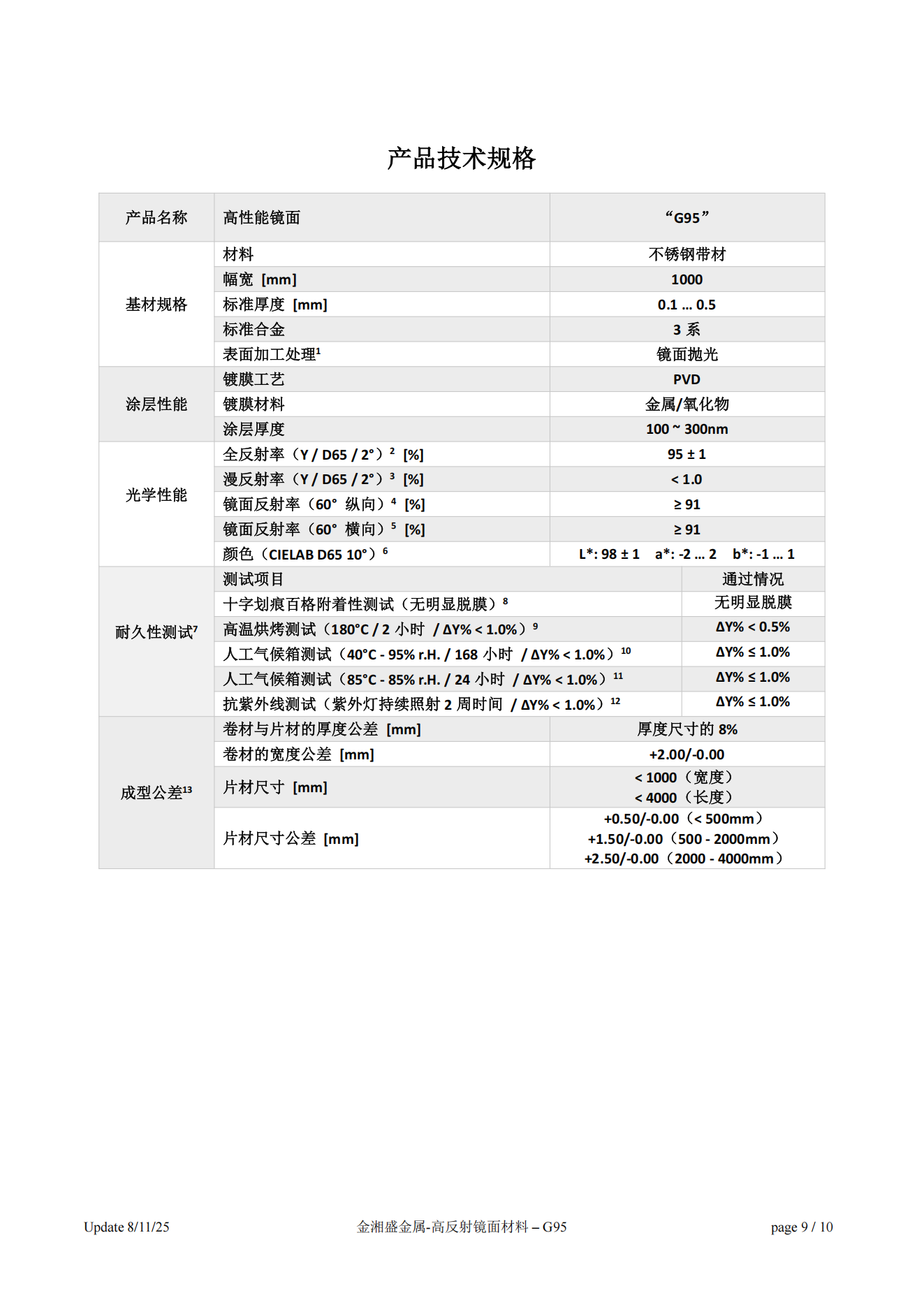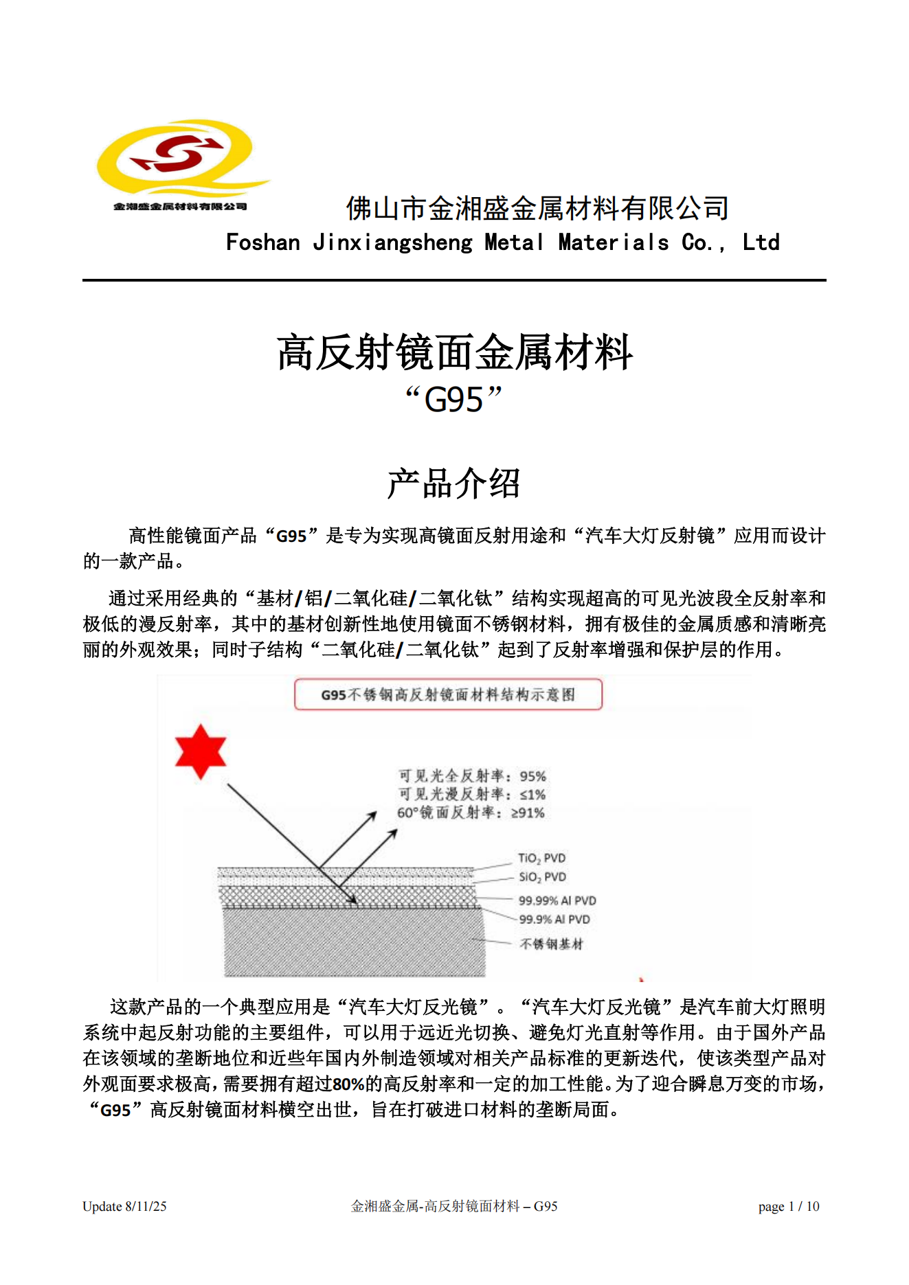 佛山金湘盛推出高反射镜面金属材料“G95”