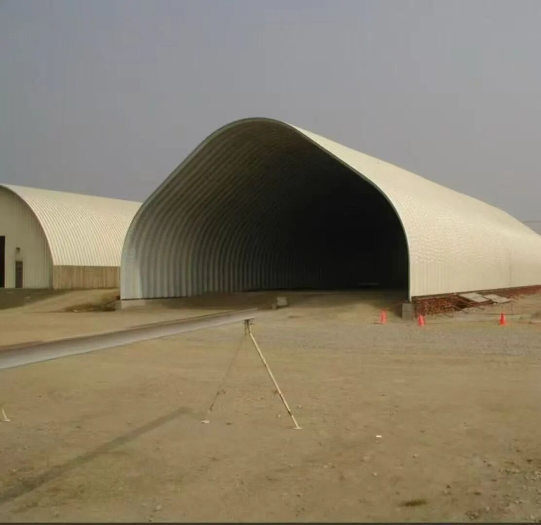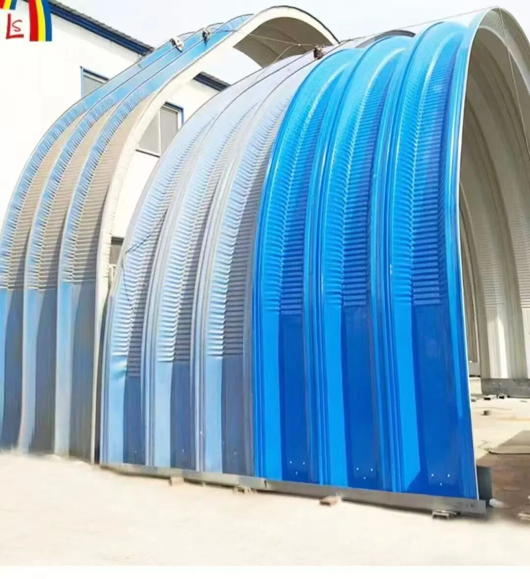 据辉得利董事长陈淦光介绍,辉得利新型不锈钢屋顶拱形建筑工程瓦拱形屋顶-无梁拱形棚空间宽阔,跨越能力大造价低,投资少,自重轻、外形美观无需维护,自然防水跨度可达4-39米,机械锁边链接。应用于体育馆、展览馆、交易市场、储存仓库、车库机库、粮库罩棚等。