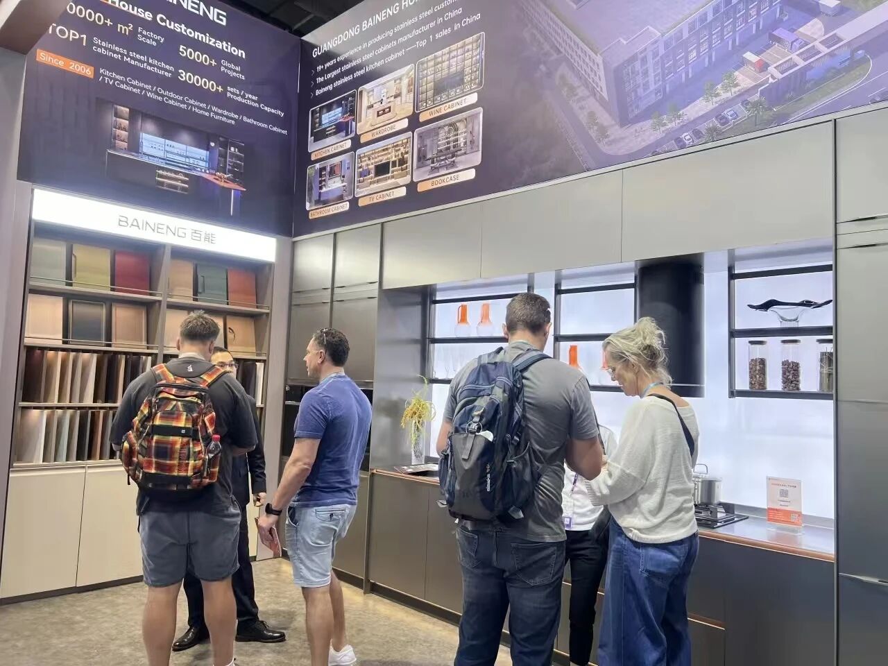 在火爆的人气背后,是百能基于工业4.0理念构建的智能制造体系与完善的产品布局。百能完成了从单一橱柜向全屋八大空间系统的全面升级,涵盖橱柜、衣柜、阳台柜、卫浴柜、酒柜、书柜、门厅柜、电视柜,为全球用户提供风格一体、品质统一的完整家居体验。与此同时,百能深度融合简约现代美学与不锈钢性能优势,彰显出中国品牌在制造、设计与创新上的全球竞争力。