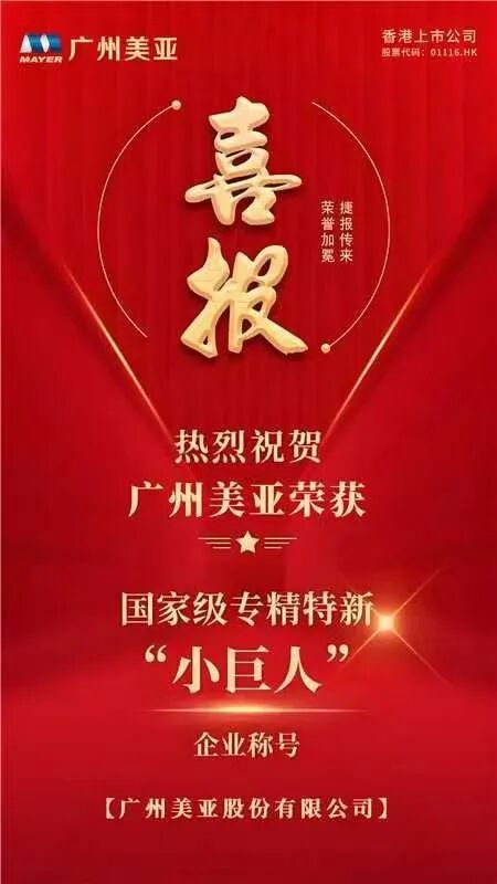 祝贺广州美亚荣获国家级专精特新“小巨人”称号