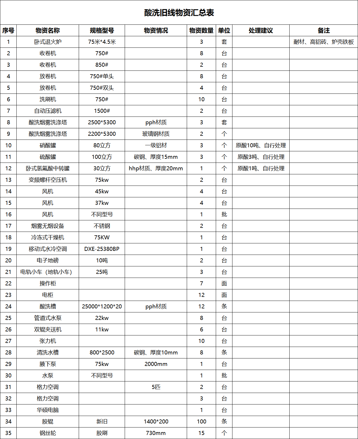 广东省不锈钢材料与制品协会副会长单位广东金海辉煌集团旗下核心企业广西梧州市金海不锈钢有限公司现因产线升级改造,现对金海旧酸洗生产线设备对外作变卖处置,包含三条退火炉、四条酸洗槽及相关辅助设备(以现场实物为准),设备保养良好,接手即可投产,直接具备开工条件,适合不锈钢酸洗行业扩产、搬迁或新厂启动。