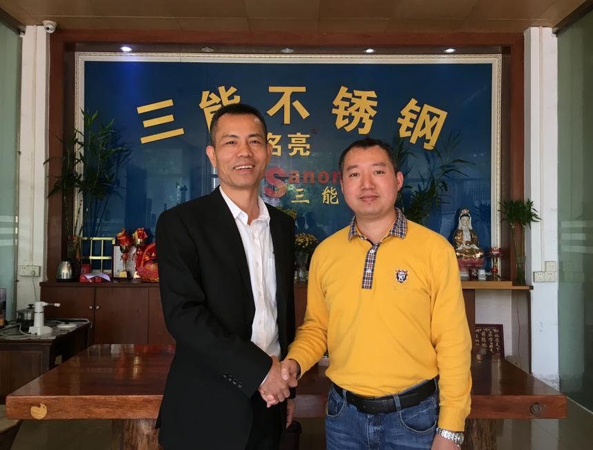 随后,林泽榆一行来到我会理事单位佛山市泰和骏业工贸有限公司,受到袁伟明董事长的热情接待。林泽榆首先对袁总在过去一年里给予协会大力支持和配合表示感谢,宁静致远的袁总对我会工作表示满意,认为我会工作开展有前瞻性、系统性和实际举措。他就其企业发展路线、举措与林泽榆进行了交流。袁总表示,泰和骏业目前是注重基础和发展的阶段,多年来扎实推进做好这两个方面;下一步将谋求创新与发展,将“金大鸿”品牌做专做大做优做强。据袁总透露,其公司将继续参展2017第11届华南不锈钢展览会,除扩大展位面积外将重点展出系列精新产品。他对于我会牵头主办的专业不锈钢展会予以肯定并提出了建议。谈及当下不锈钢“管板结合”的模式,袁总对此持着高度利他开放乐观的心态,他表示这为企业提供了双赢的合作机会,并期待协会能在这方面构建平台、整合资源,促进会员之间互惠互利。期间,林泽榆就近期我会即将开展的有关工作听取了意见。