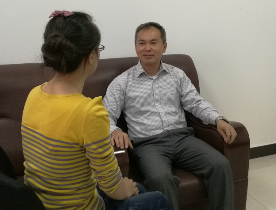 钟国伟(右)接受记者专访