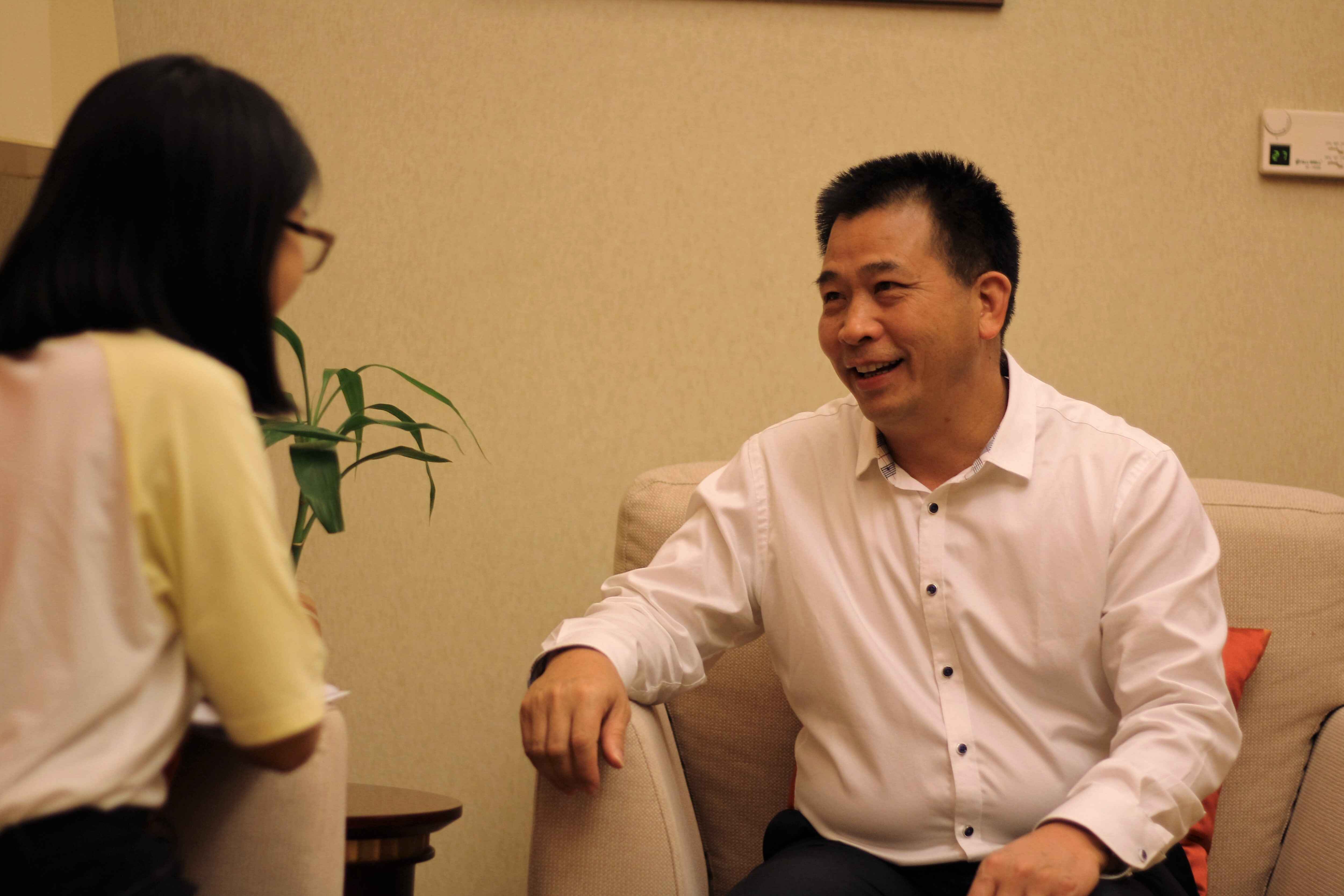 李儒昌(右)接受记者采访