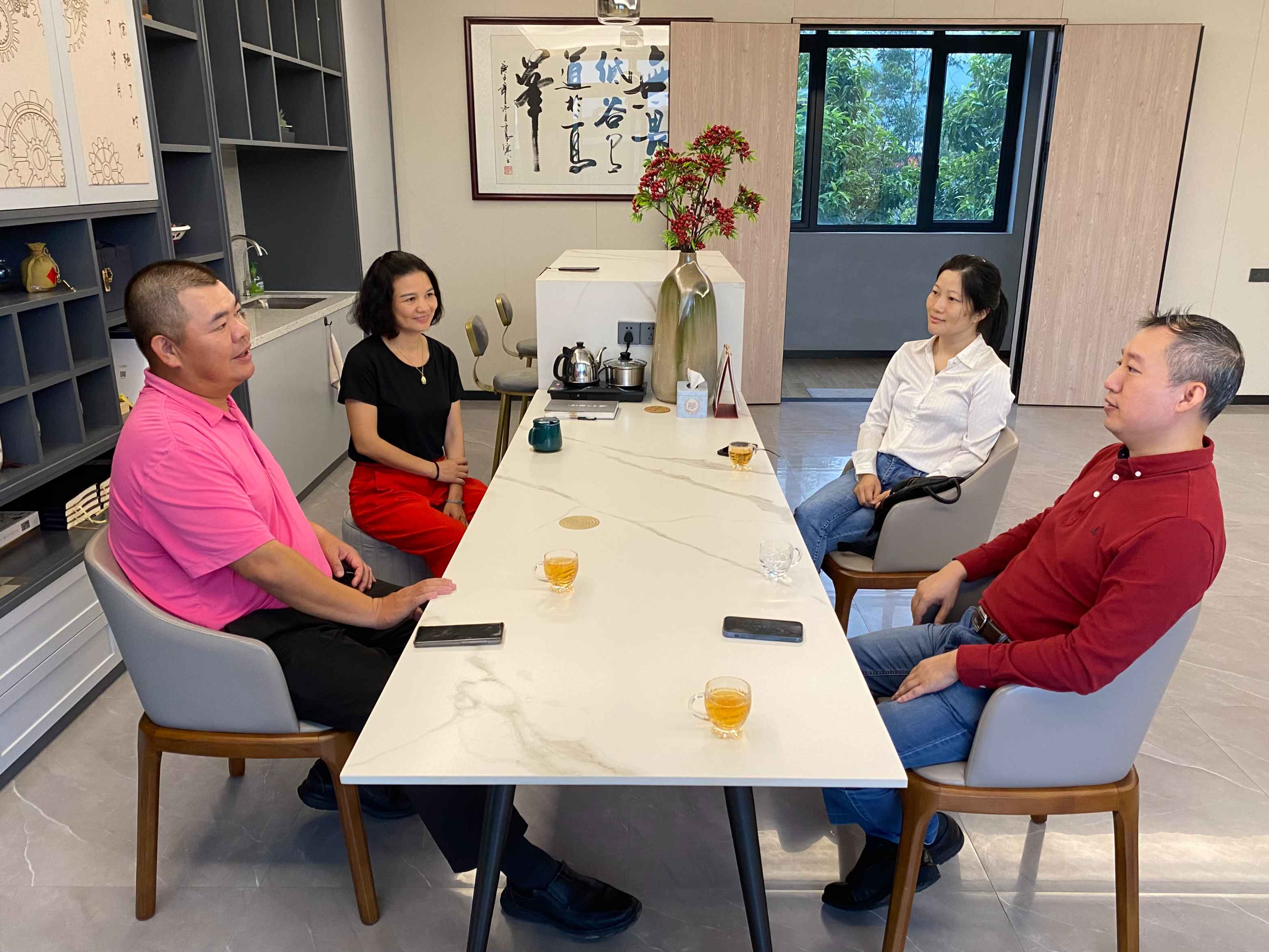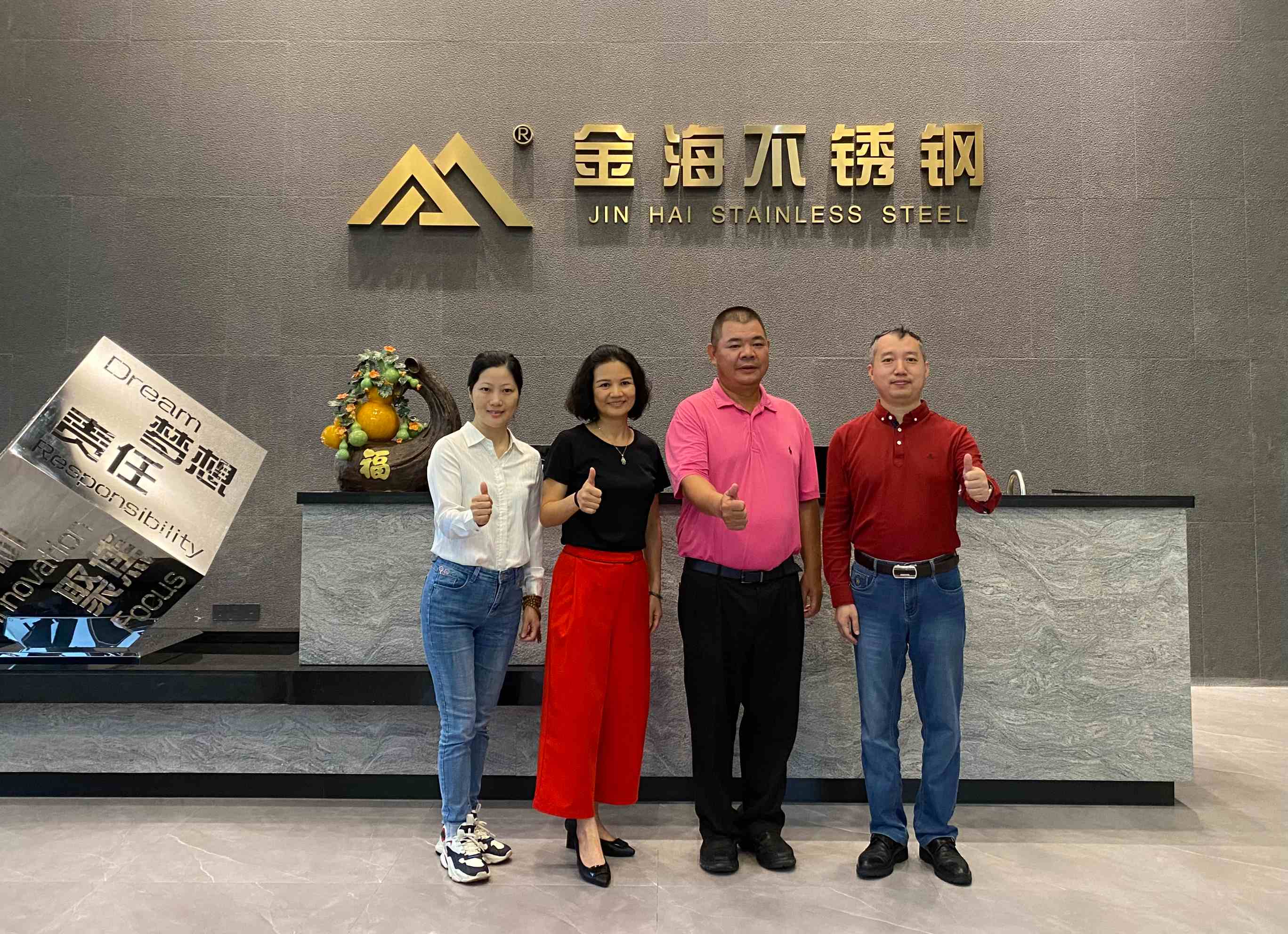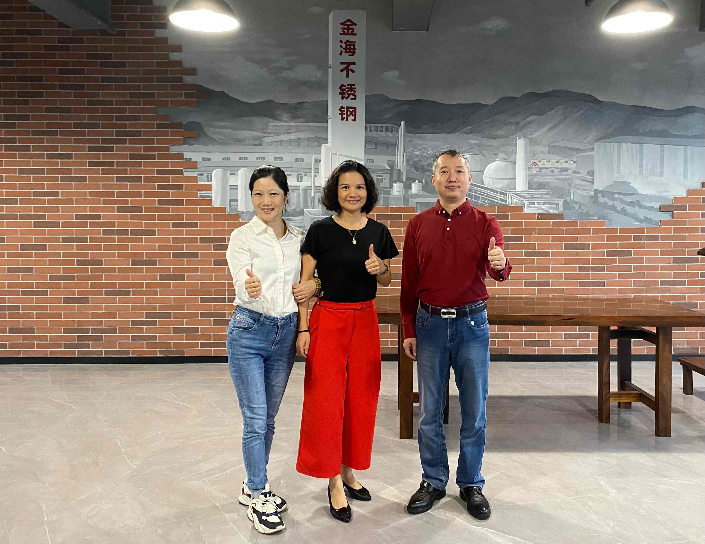10月10日下午,广东省不锈钢材料与制品协会执行会长兼中国建材市场协会金属建材应用分会会长林泽榆、秘书长黄耿燕及助理陈嘉泳一行3人走访了副会长单位广东金海辉煌集团有限公司旗下位于广西梧州的生产基地,受到李娟董事长和王文辉总裁的热情接待,宾主双方进行了愉快的座谈交流。