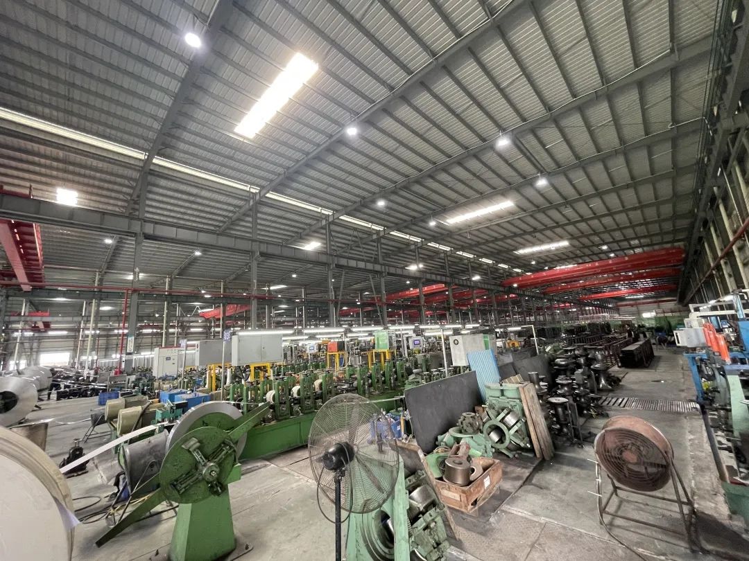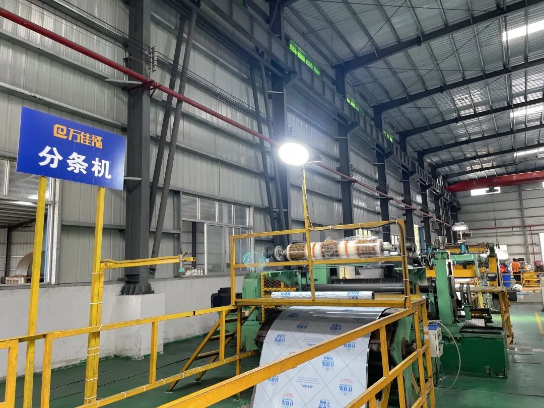 杜海波董事长对林会长一行到来表示欢迎,并首先陪同参观了万佳泓江门台山生产车间。座谈中杜海波董事长就当前不锈钢装饰管、装饰板的行业状况、产业链生态及企业持续发展等话题与林会长、黄秘书长进行交流。目前万佳泓台山生产基地工厂占地7万多平方米,目前建造了不锈钢管、不锈钢板两大生产车间和仓储、办公大楼及宿舍楼生活区。台山生产基地配置了平板机、分条机、磨砂机、压花机、七彩拉丝机、8K及无指纹生产线,开足8个钛金炉,污水处理系统完备;制管车间配置了66条焊管生产线,设备全面升级、人员到位、管理统一、效率提升。杜海波董事长表示,今年销量保持相对稳定,但比业绩峰值有距离,他对当前不锈钢产业生态链及不锈钢装饰管、板新态势发表的自已的看法,认为还要面临诸多挑战。万佳泓将维持稳定发展,保持在产品品类开发、工艺创新等方面不断努力,尤其在高端定制产品具有相当的优势。此外,11个配送中心幅射全国各地,继续发挥优势,将市场、服务、产品前移,更好的满足客户的需求,打通销售最后一公里,解决客户的仓储、运输后顾之忧。