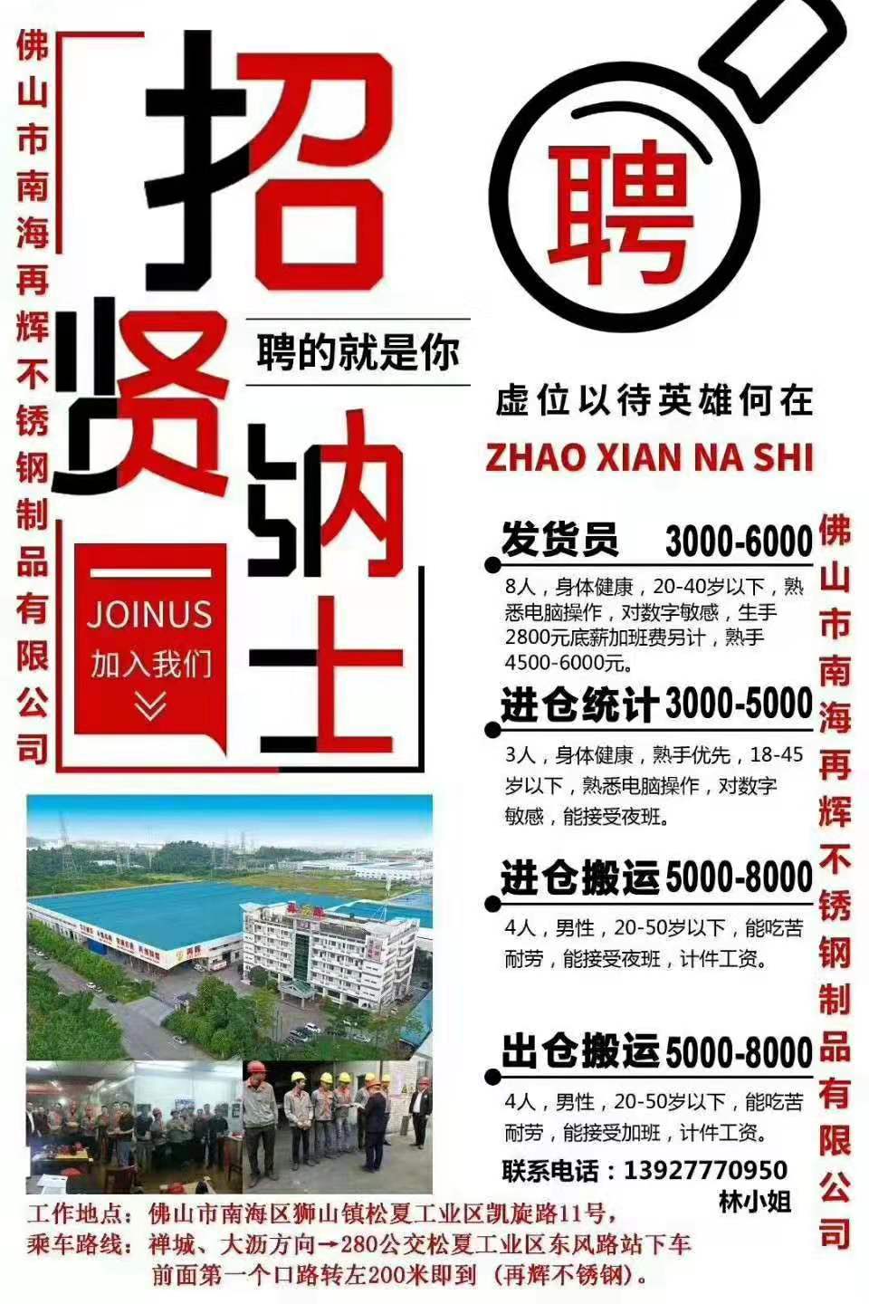 佛山市南海再辉不锈钢制品有限公司是广东省不锈钢材料与制品协会与制品协会副会长单位,现因业务发展需要诚聘以下职位精英: