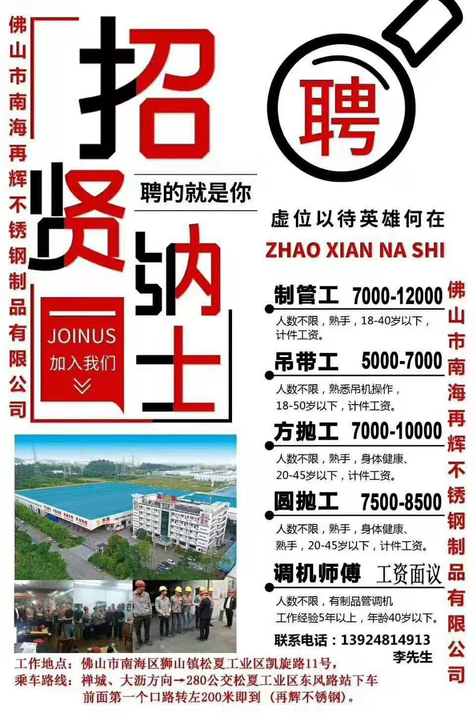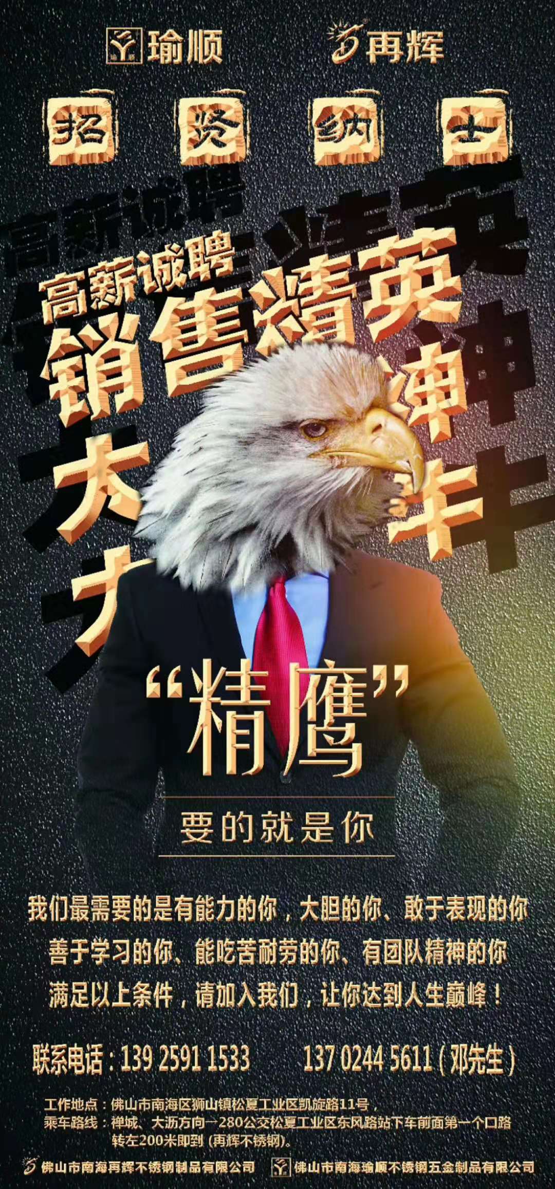 | 招聘职位 | 再辉不锈钢诚聘精英 |