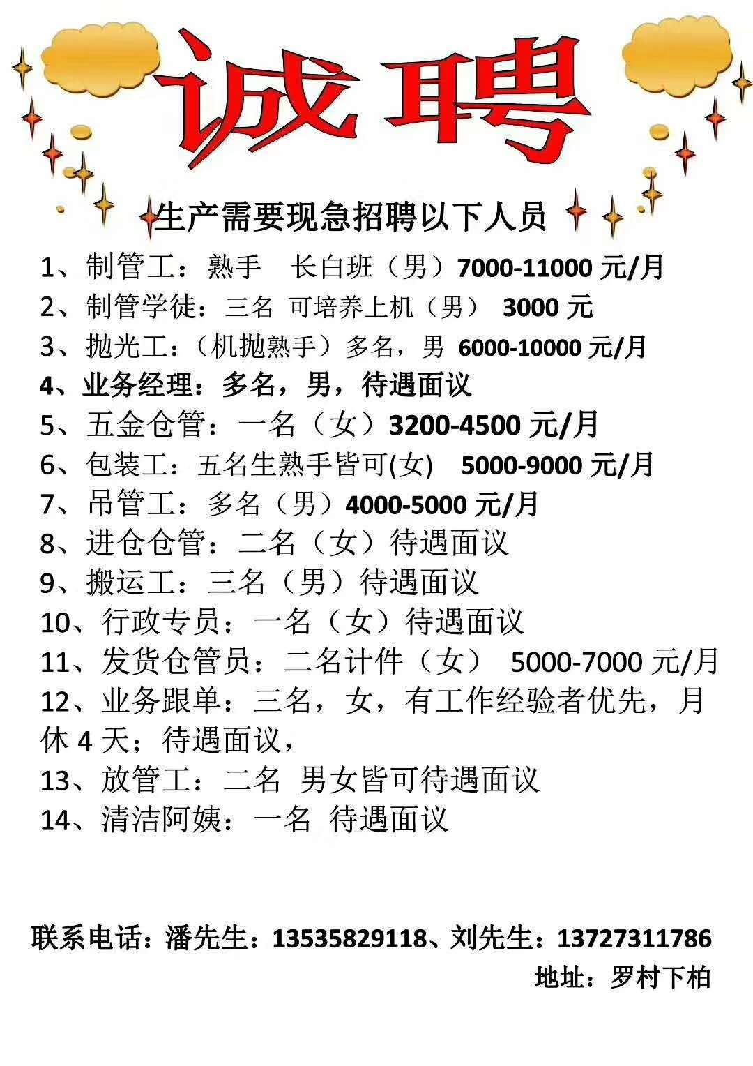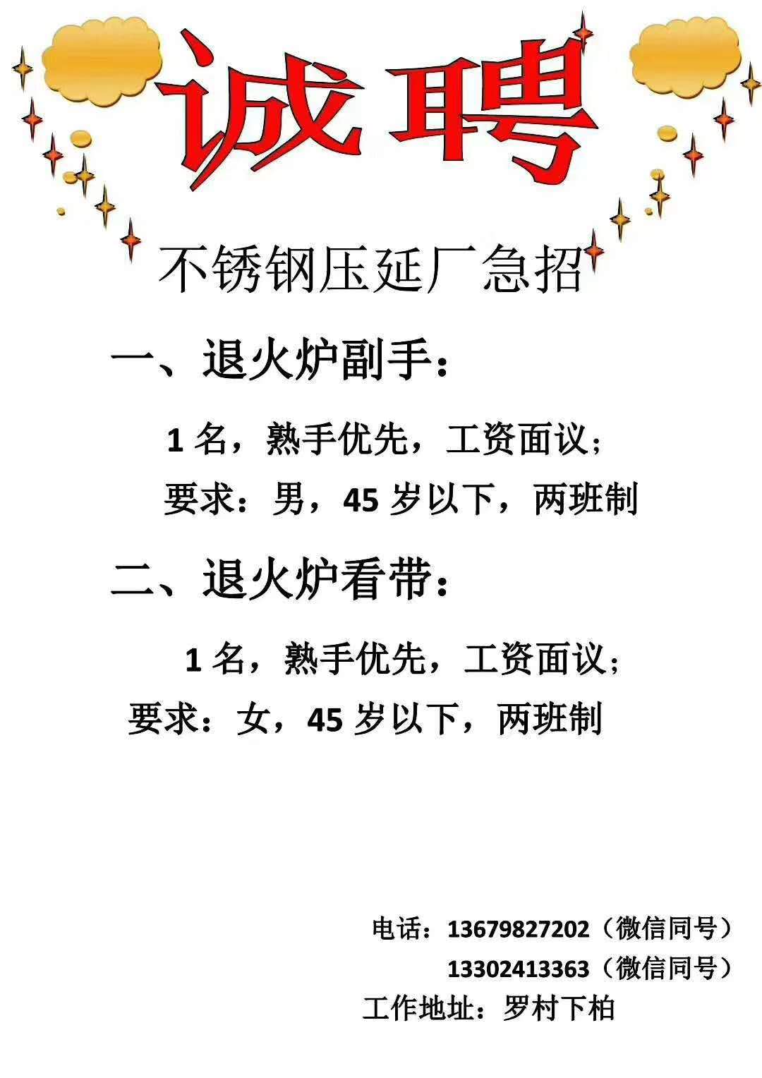 | 招聘职位 | 恒丰不锈钢诚聘精英 |