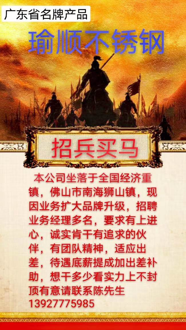 瑜顺不锈钢诚聘精英