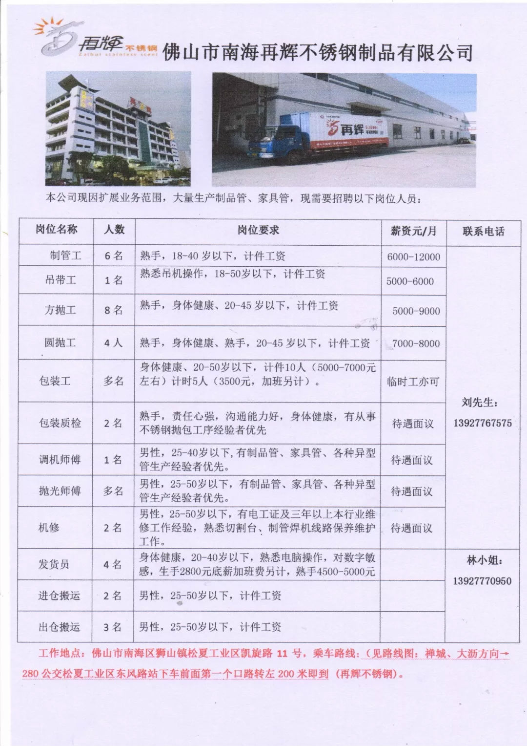 | 招聘职位 | 再辉不锈钢诚聘精英 |