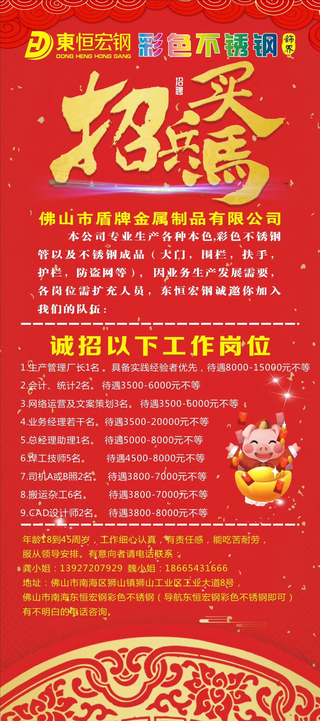因业务发展需要,我会理事单位——佛山市盾牌金属制品有限公司现诚聘以下精英: