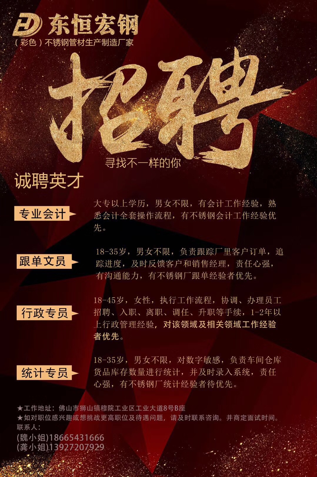 佛山市盾牌金属制品有限公司是广东省不锈钢材料与制品协会理事单位,该公司是以专业开发、生产、加工与销售多种类型不锈钢管、不锈钢制品和不锈钢定制的规模企业,现因业务发展需要,诚聘以下精英: