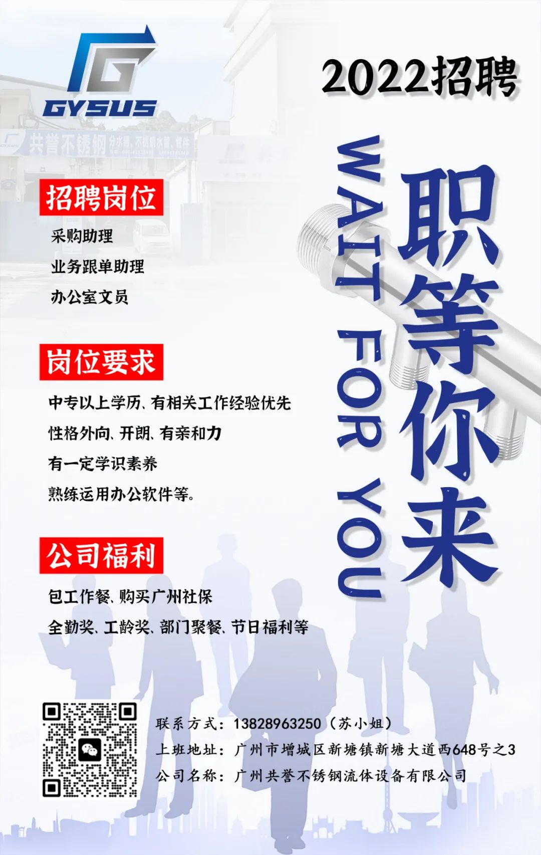 | 广州共誉不锈钢流体设备有限公司是广东省不锈钢材料与制品协会会员单位,现因发展需要诚聘以下职位精英: | |