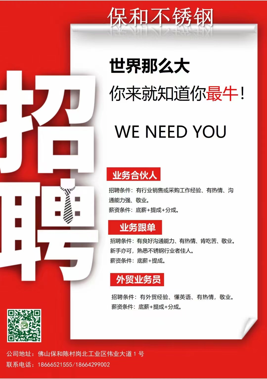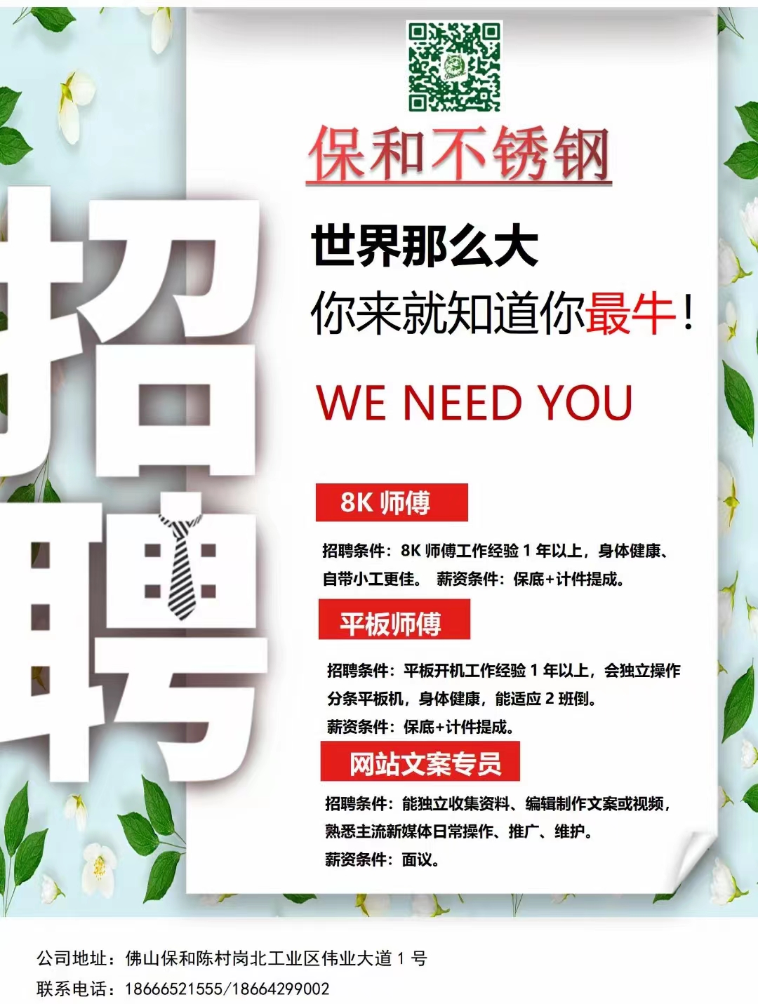 | 招聘职位 | 保和不锈钢诚聘精英 |