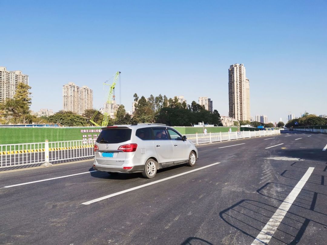 ▲12月11日,二号线湾华站前方魁奇路恢复双向6车道通行。图源:岑雪莹