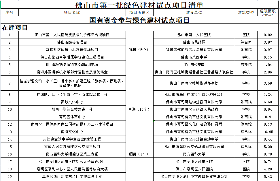 佛山市第一批绿色建材试点项目清单