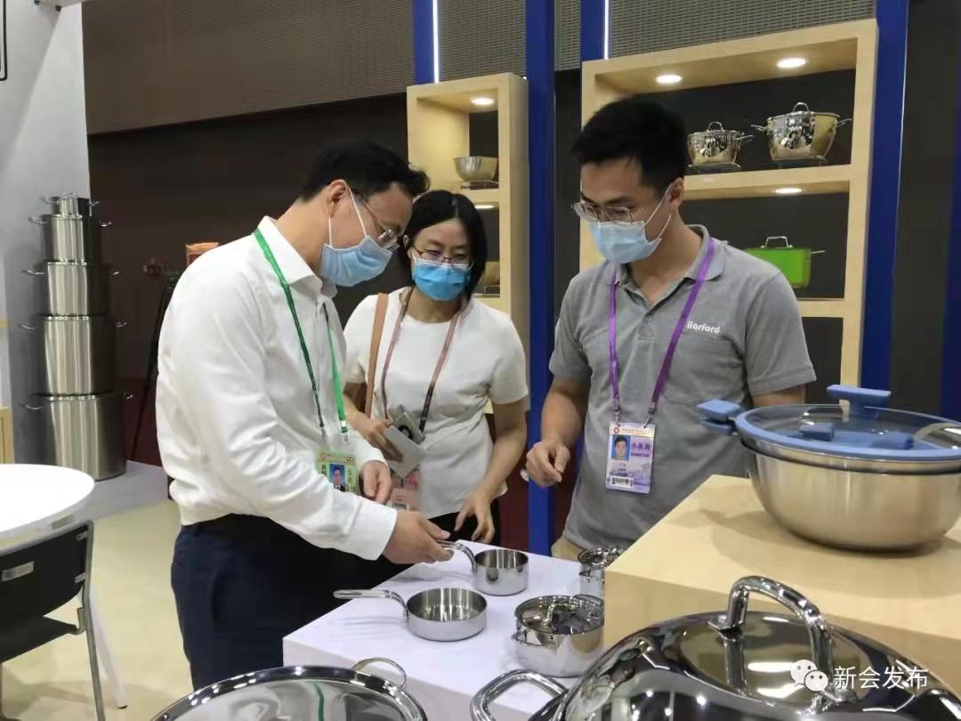 江门市浩盈不锈钢制品有限公司是新会区专业生产销售不锈钢厨具的重点企业,在本届广交会上,该公司带来了新开发的产品凹型钢盖炒锅、可立侧耳炒锅和锥型喷PVD奶锅,一经亮相便受到不少采购商的关注。浩盈公司负责人表示,这次参展的产品是他们耗时一年精心筹备的,希望通过这些新产品,让更多的人了解企业的新创意和新技术,让“新会制造”走向世界,进一步打响“新会五金不锈钢”品牌。