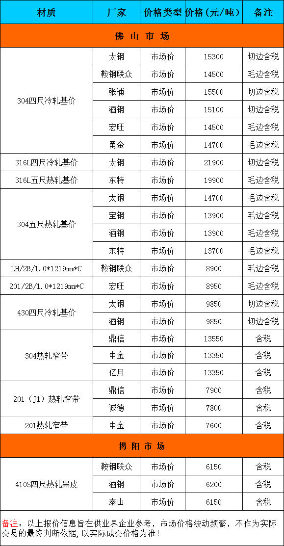 12月11日广东市场不锈钢卷主流参考价格