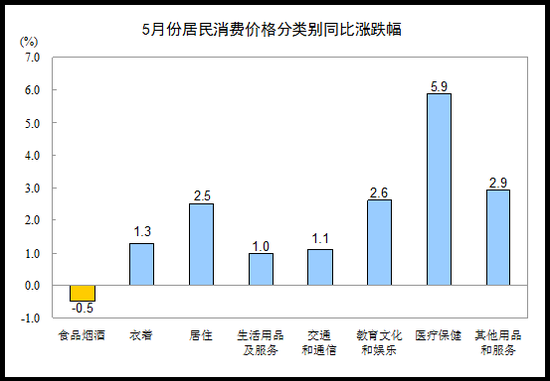 5月CPI同比增长1.5% 猪肉价下降12.8%