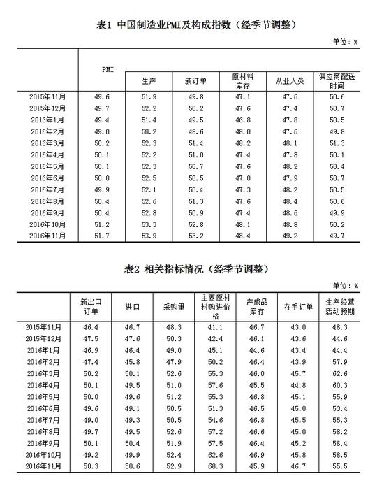 11月官方制造业PMI为51.7 延续上升趋势至两年来高位